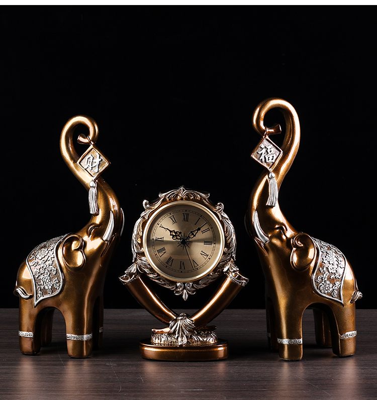 歐式座鐘客廳復古鐘表時鐘美式靜音擺鐘桌面鐘大象牙臺式玄關擺件1入