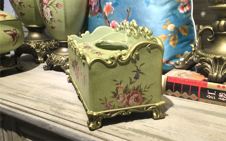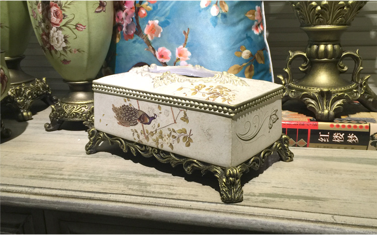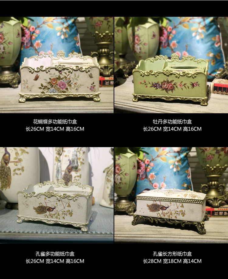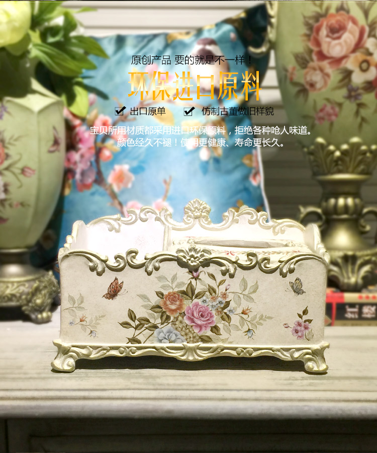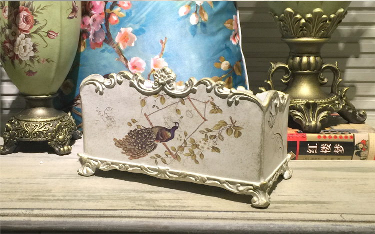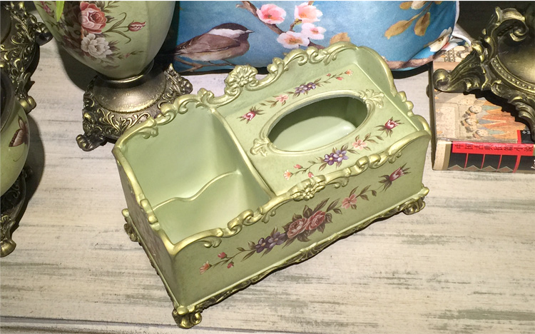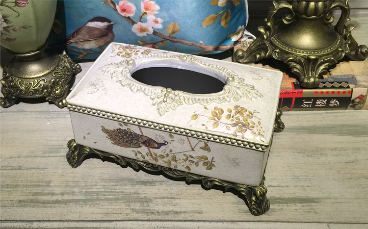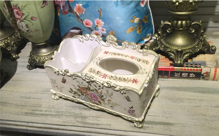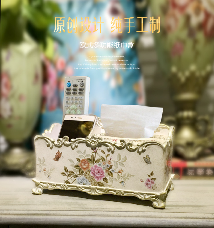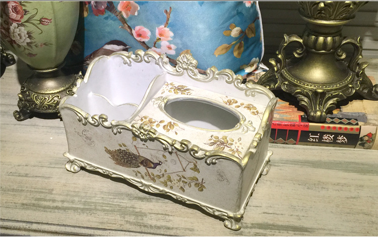 北歐式紙巾盒多功能遙控器收納盒美式鄉村花鳥客廳創意家用抽紙盒1入