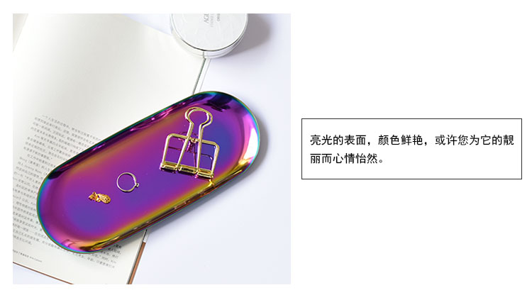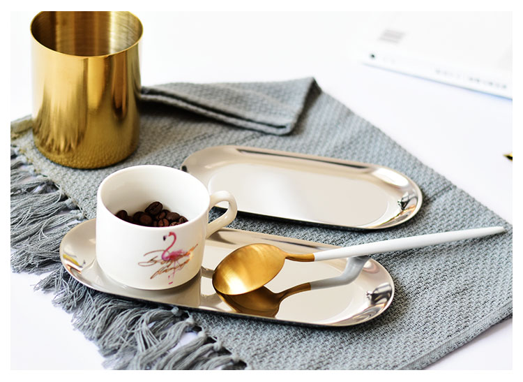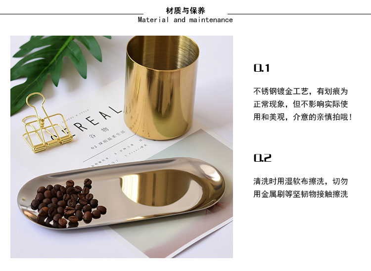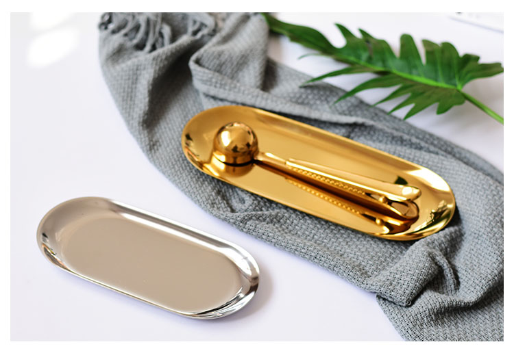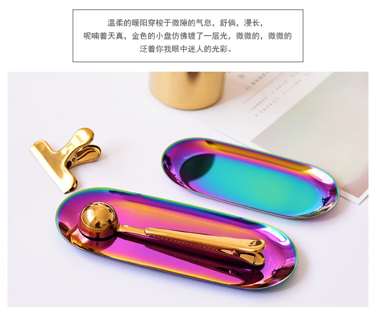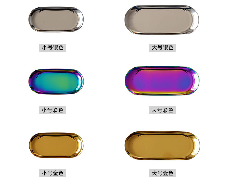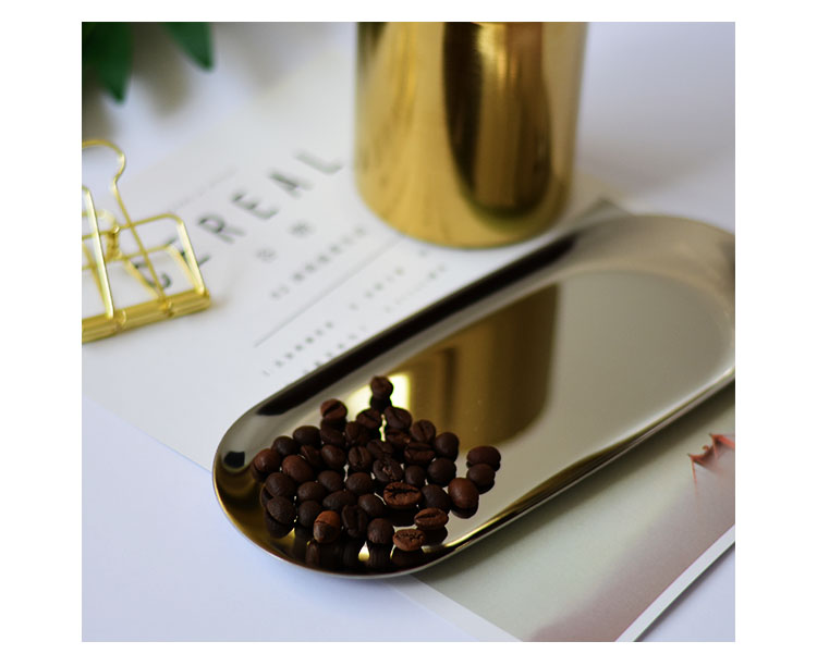 北歐風格金色收納盤金屬長圓形托盤首飾美妝置物水果茶盤銅色擺件1入