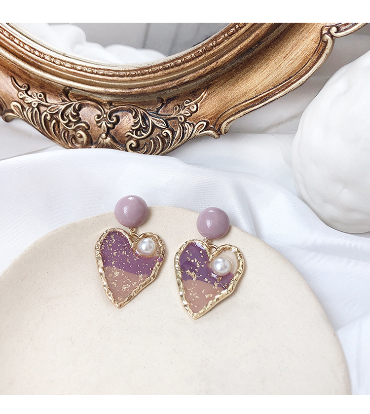 韓國東大門金屬愛心珍珠耳環2019新款潮氣質百搭網紅同款耳釘耳飾1入