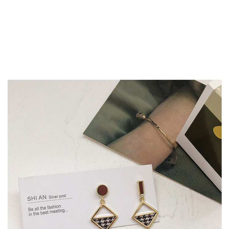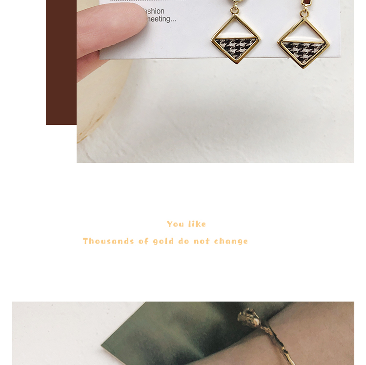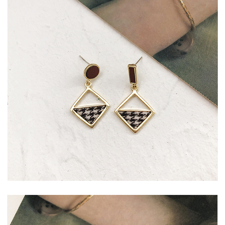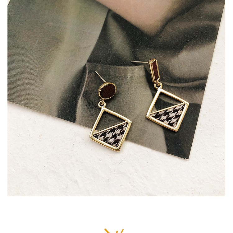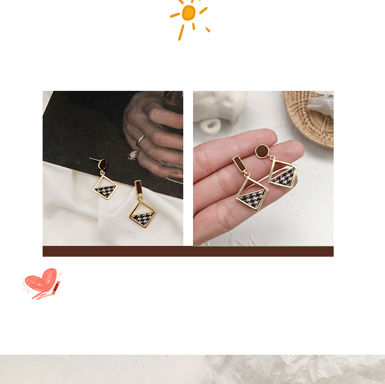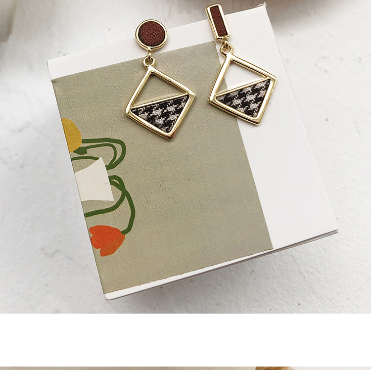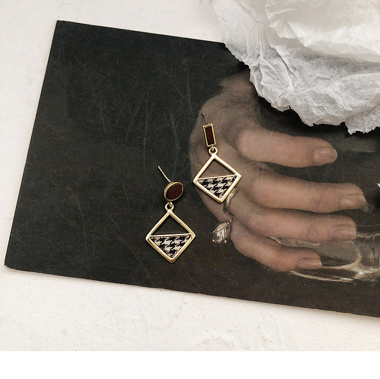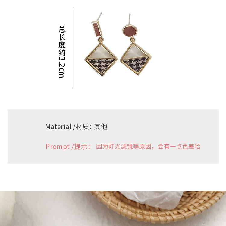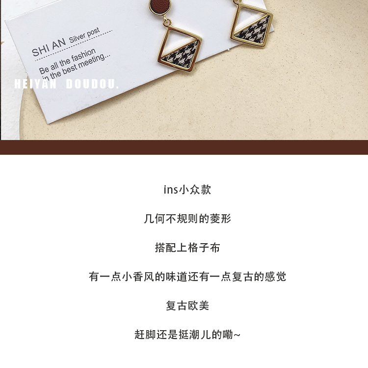 設計感小眾法式耳環2019新款潮韓國不對稱復古氣質千鳥格耳墜耳釘1入