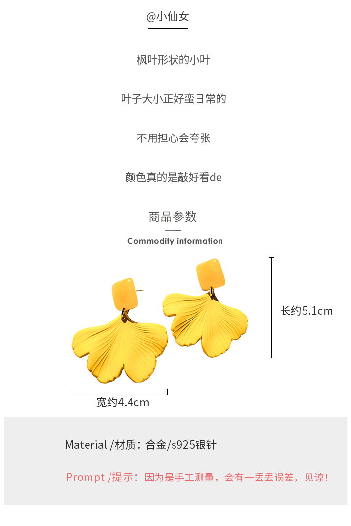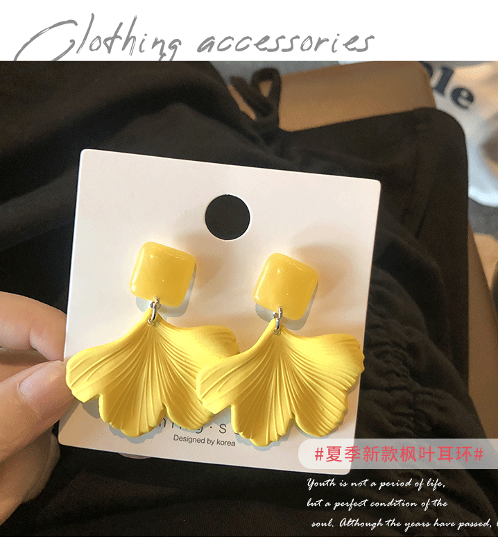 黃色夏季耳環2019潮夏天清新百搭夸張耳飾女氣質長款網紅耳墜新款1入