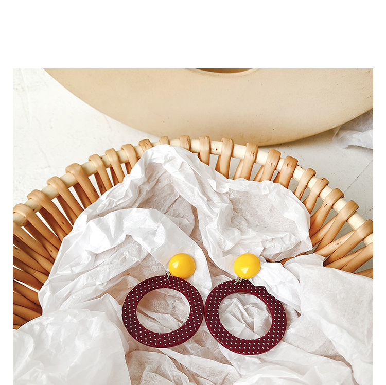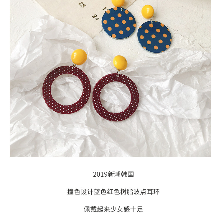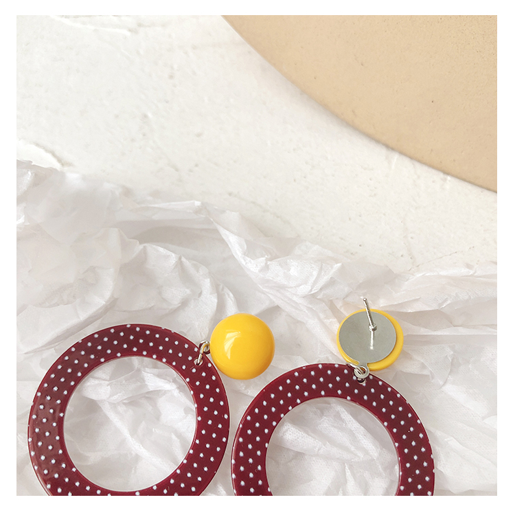 韓版氣質黃色波點小眾高級感復古耳環氣質夸張網紅少女冷淡風耳釘1入
