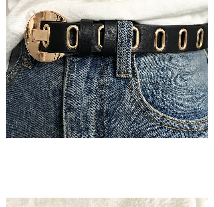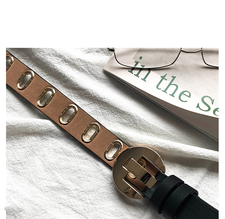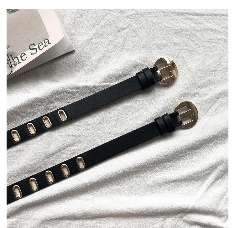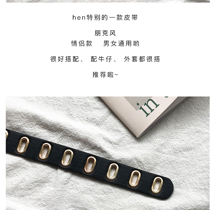 街頭褲腰帶女士時髦chic金屬鏤空腰帶青少年潮流百搭細皮帶免打孔1入