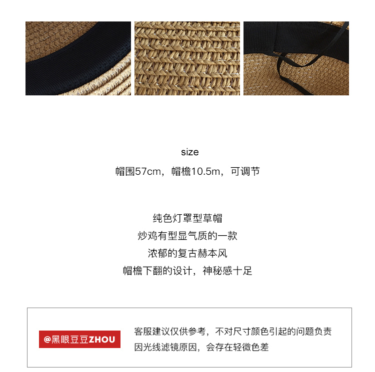 韓版復古赫本帽子女夏小清新網紅大檐度假海邊沙灘草帽防曬遮陽帽1入