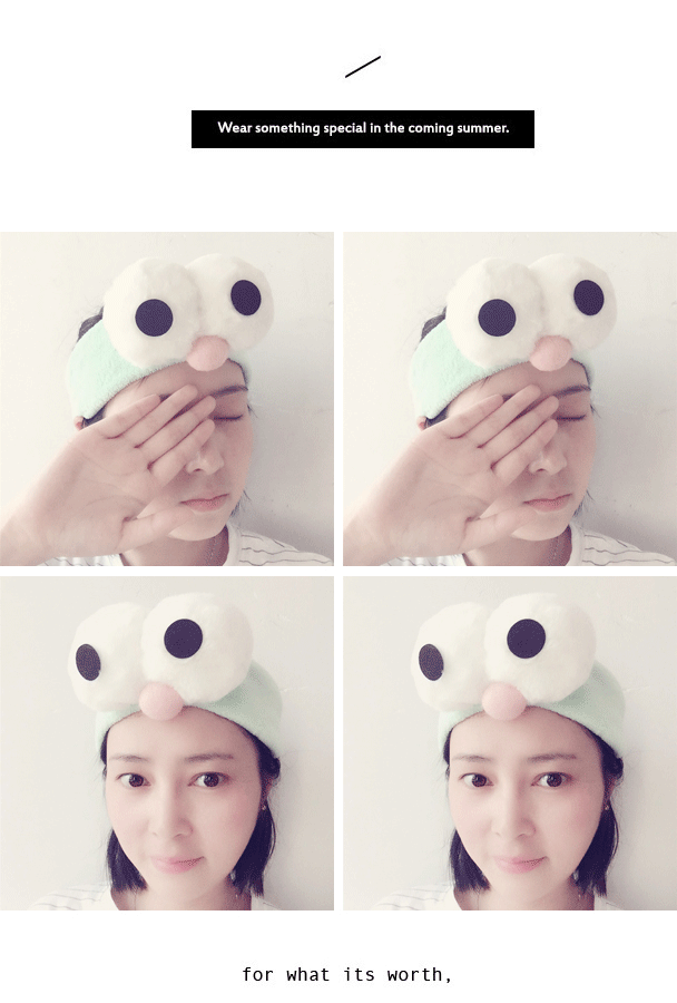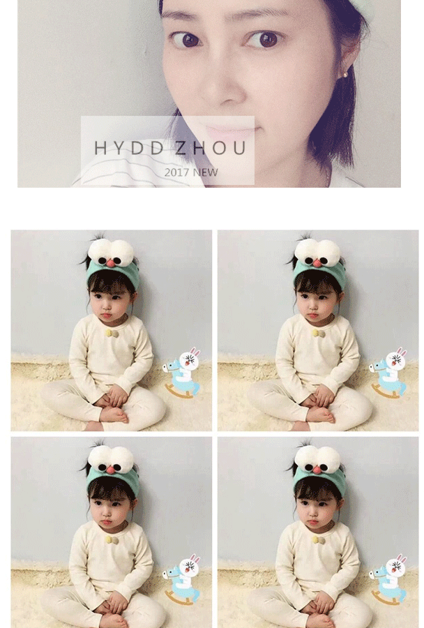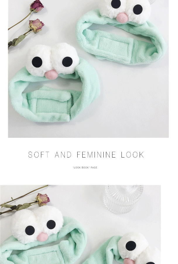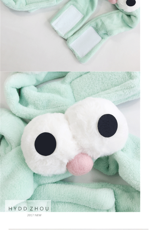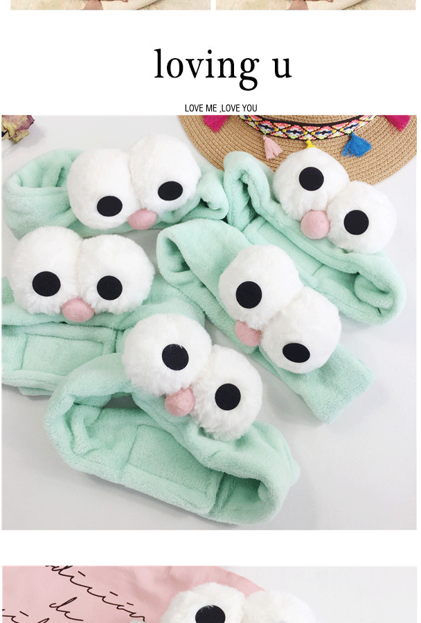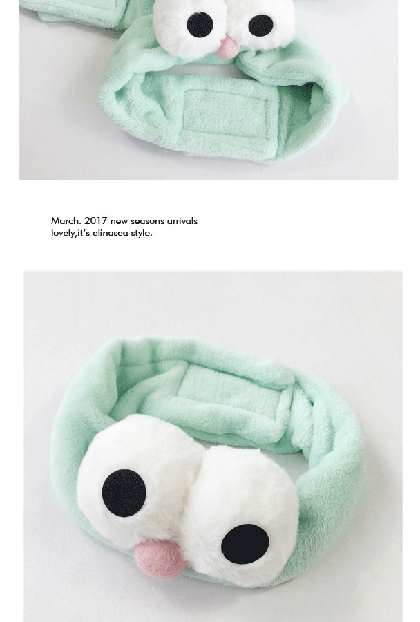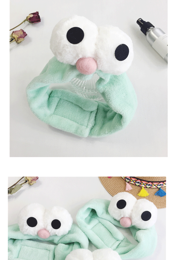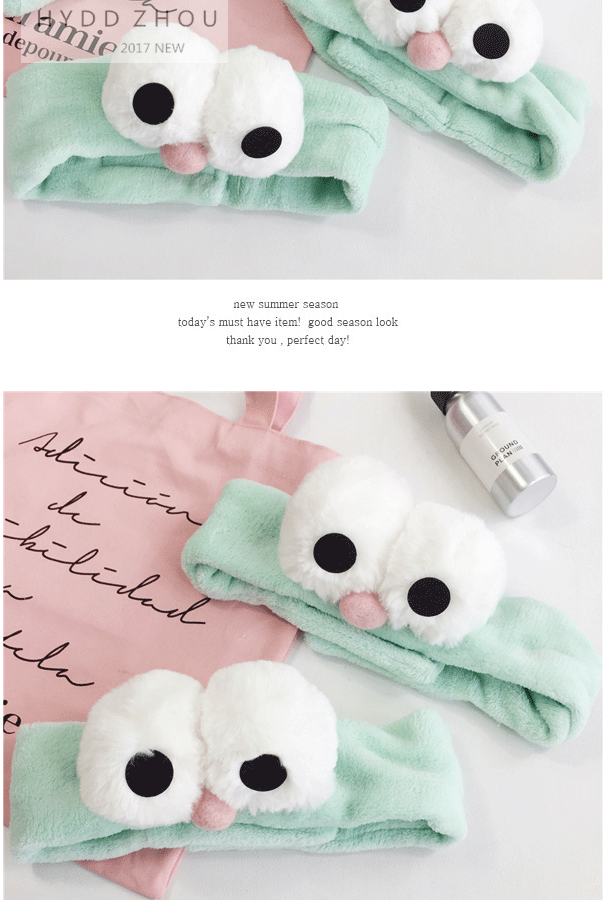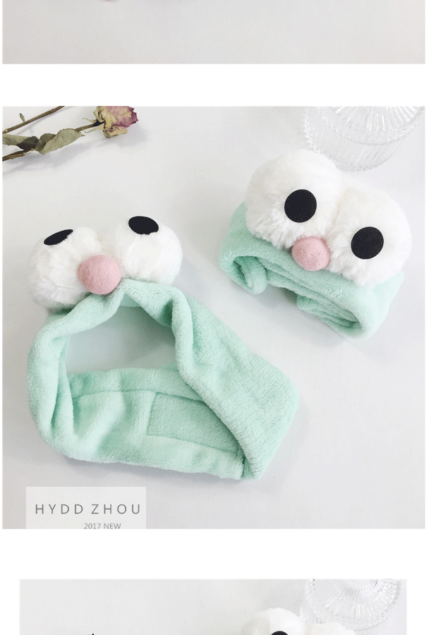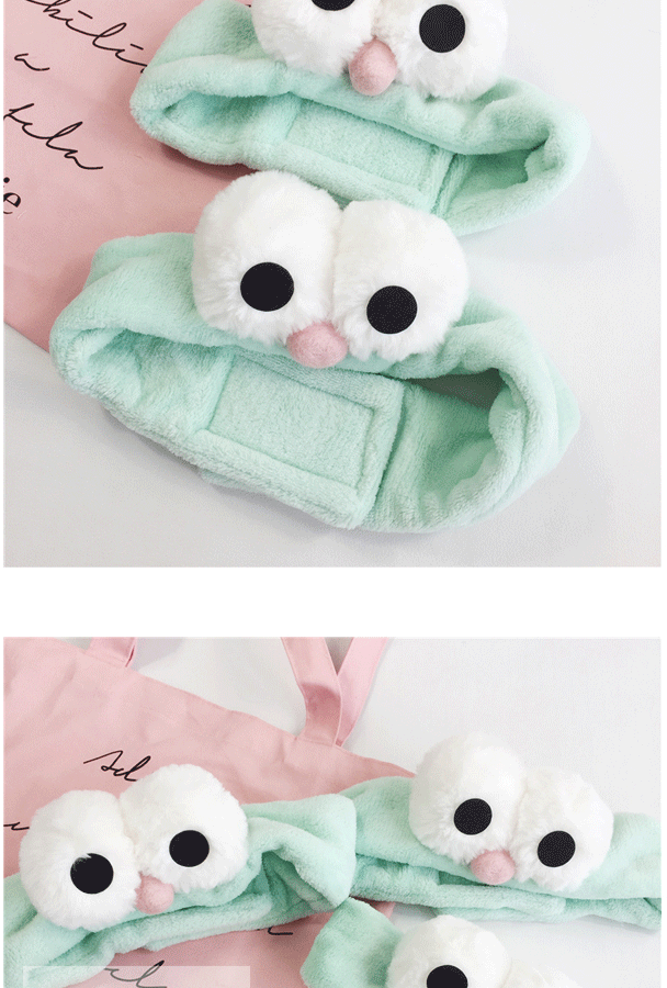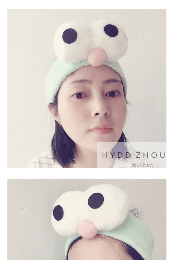 韓國洗臉發箍薄荷綠立體卡通大眼睛發帶魔術貼束發帶頭帶發飾1入