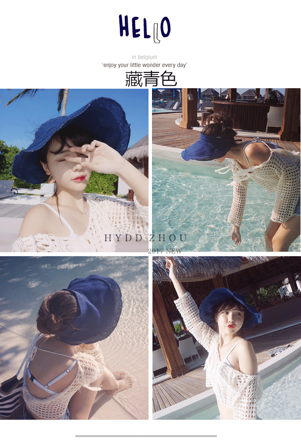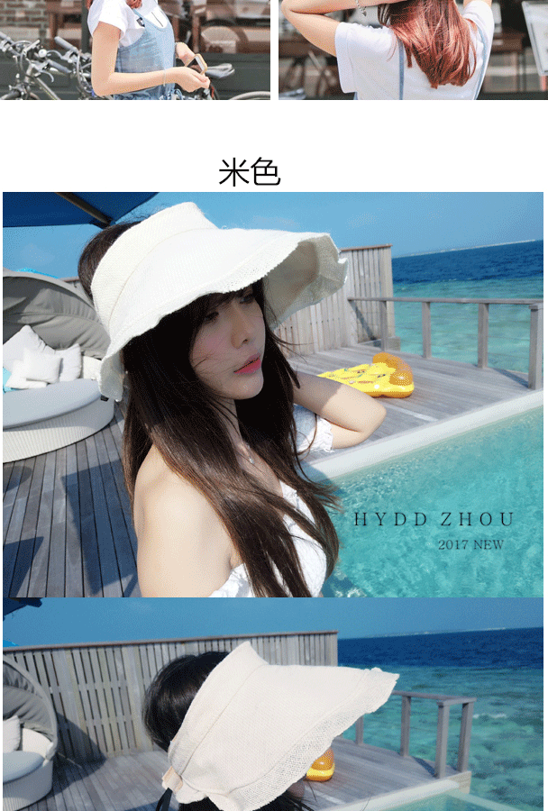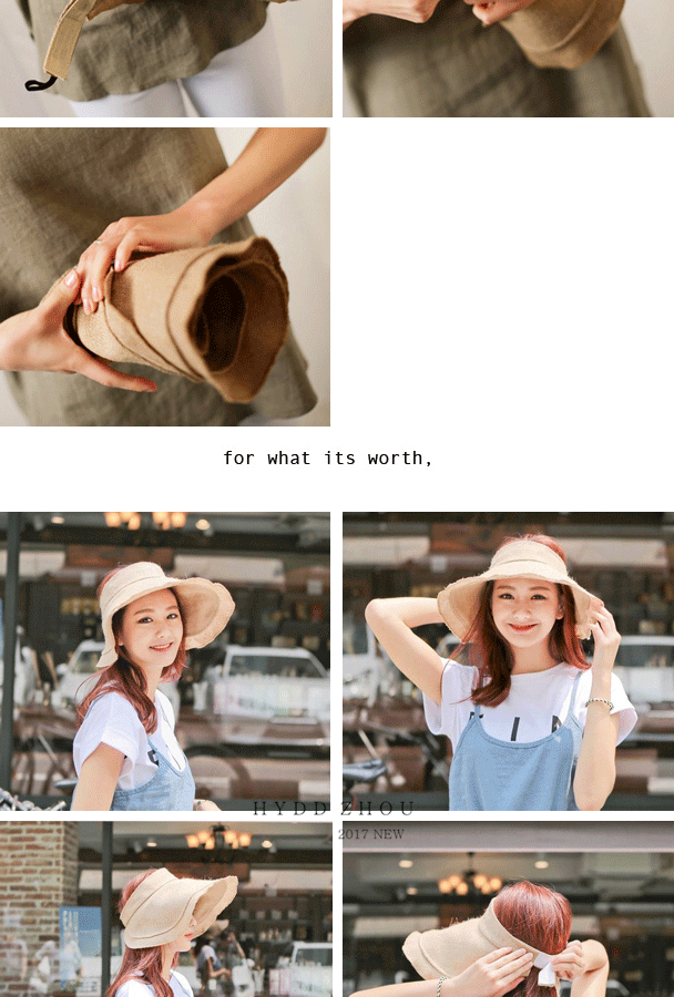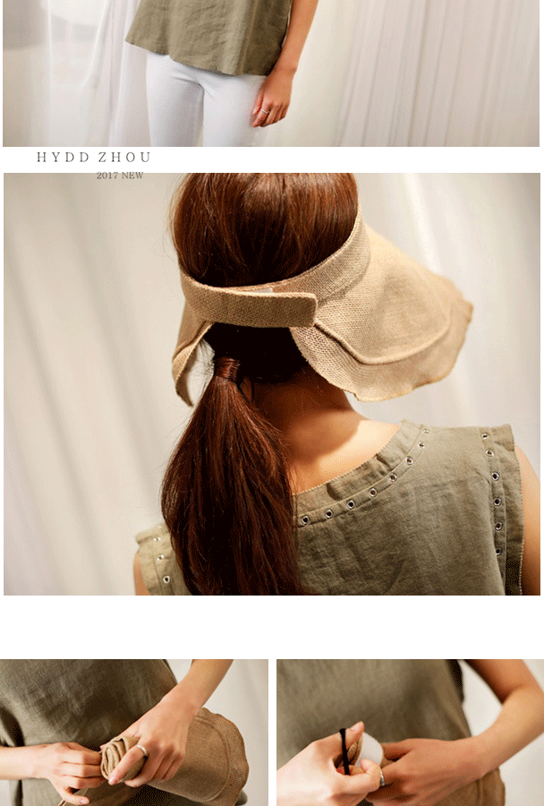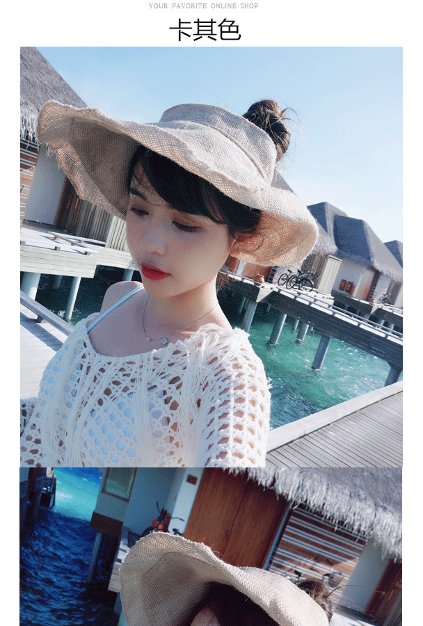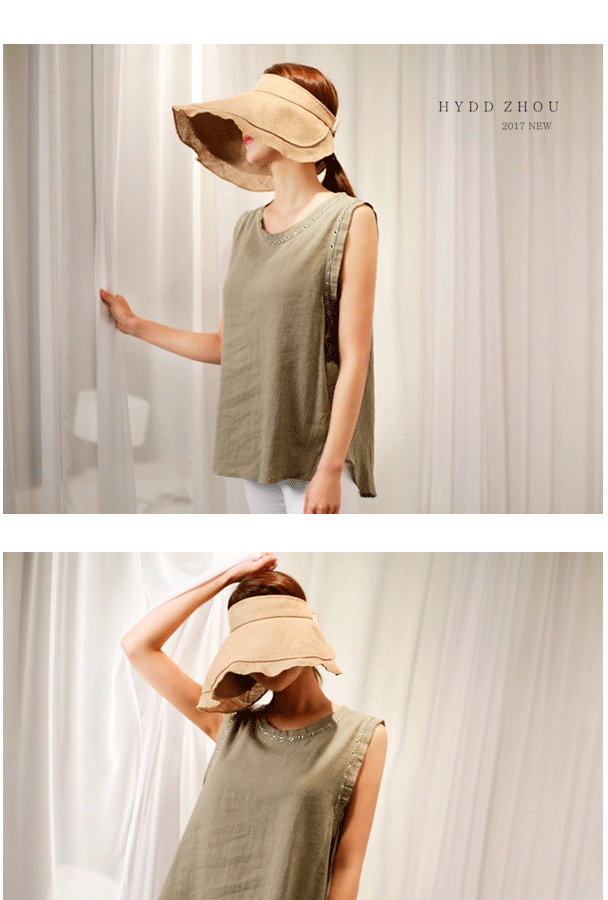 韓國可折疊亞麻帽子女夏天防曬防紫外線空頂遮陽大沿太陽帽夏遮臉1入