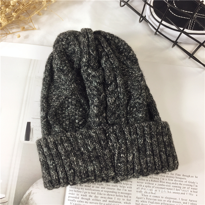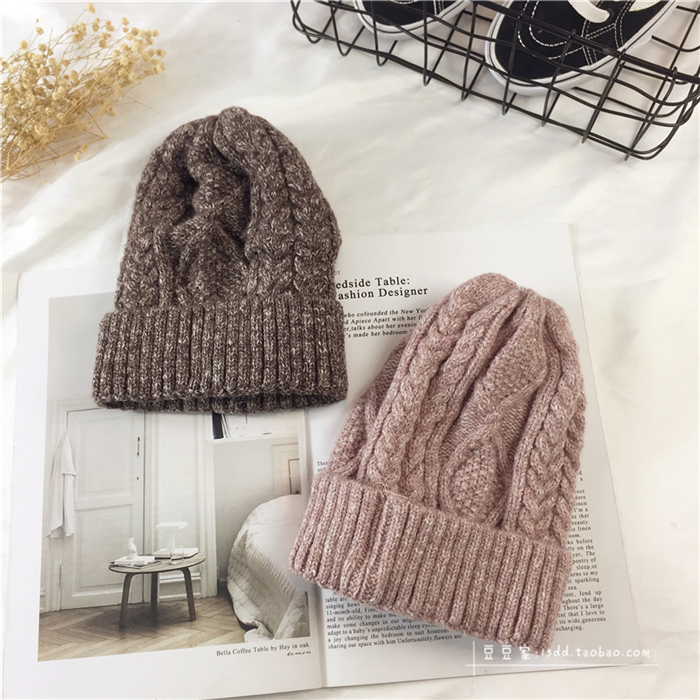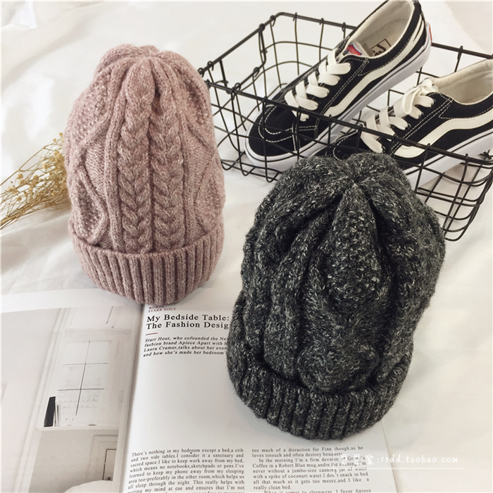 韓版麻花針織帽男女休閑百搭毛線帽冬季保暖套頭護耳冷帽潮情侶帽1入