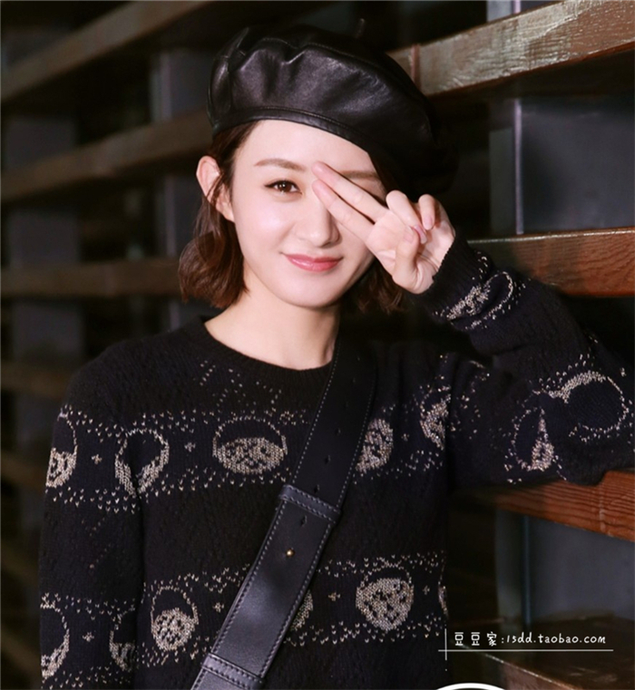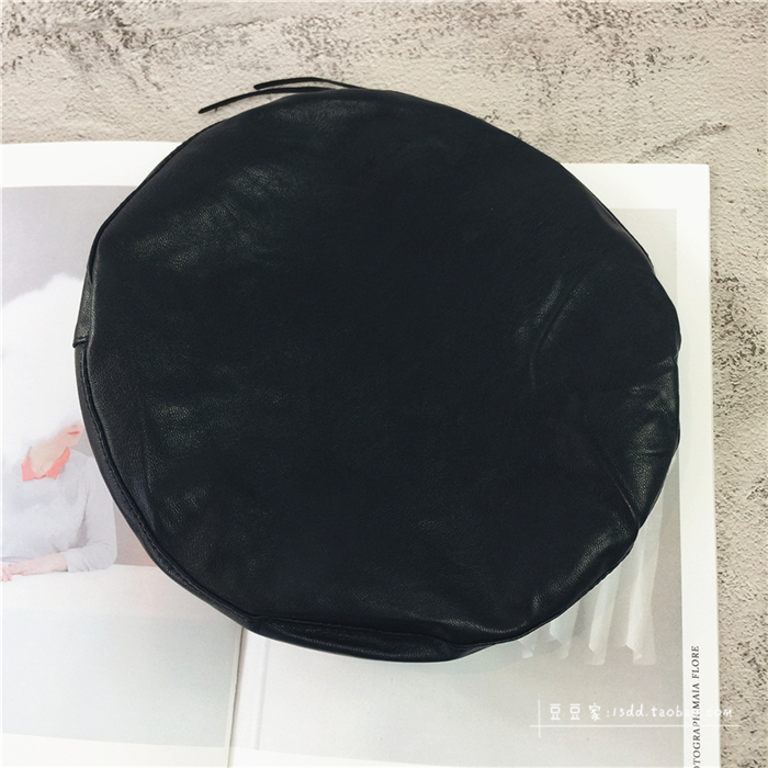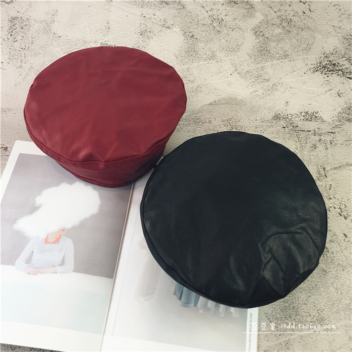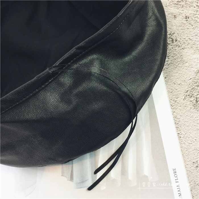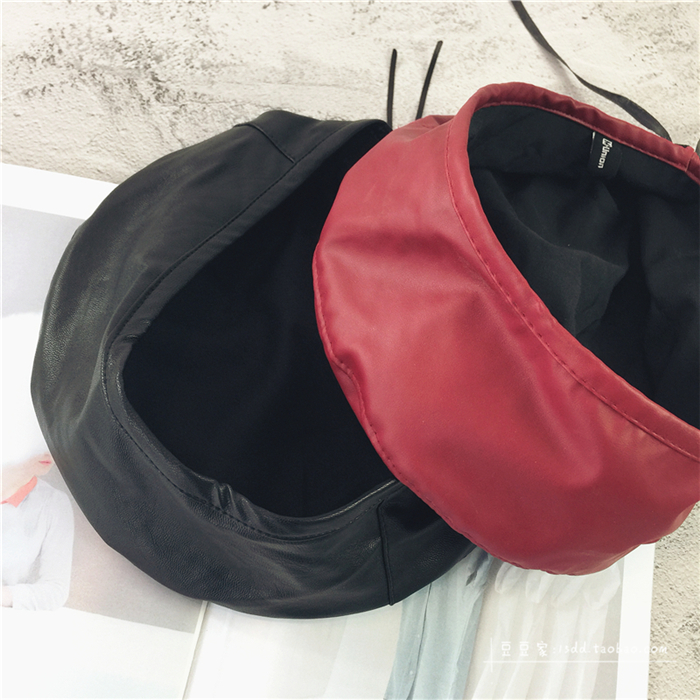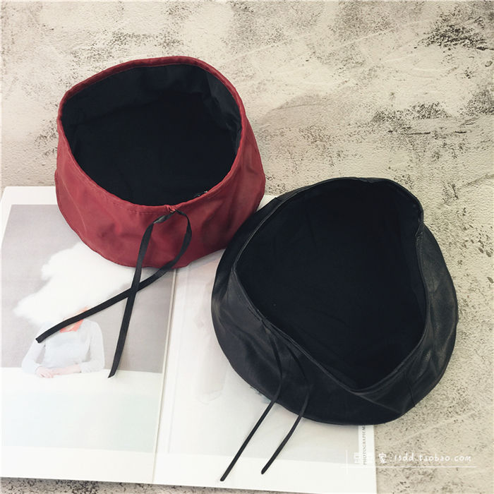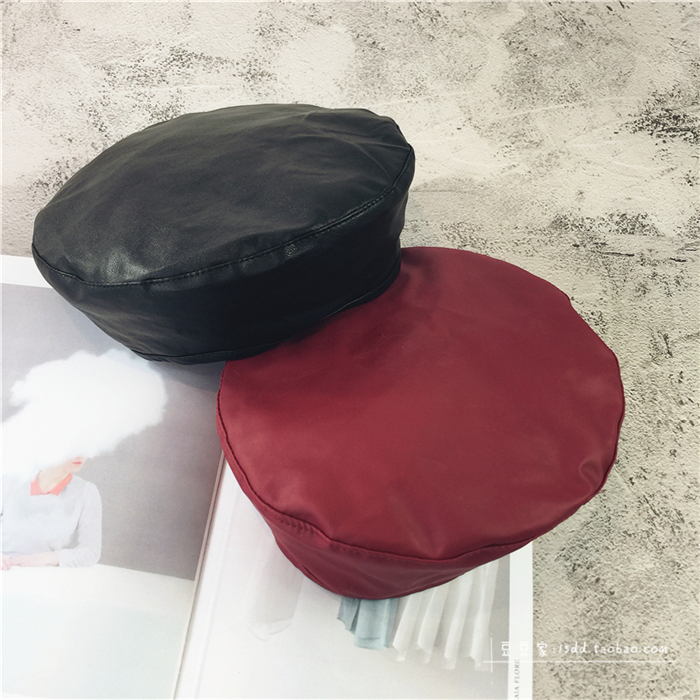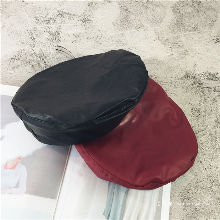 趙麗穎同款貝雷帽女韓版百搭皮質平頂帽子秋冬日系PU畫家帽潮港風1入