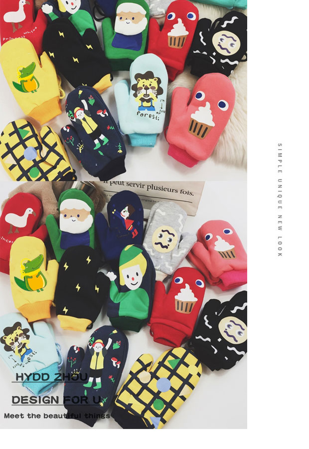 韓國可愛卡通原宿日系學生男保暖加絨掛脖冬季軟萌情侶連指手套女1入
