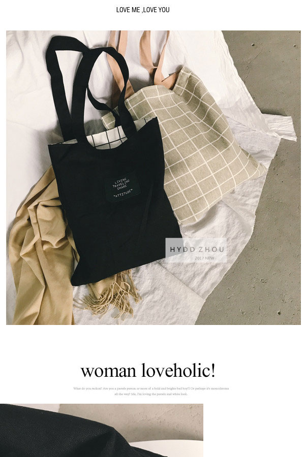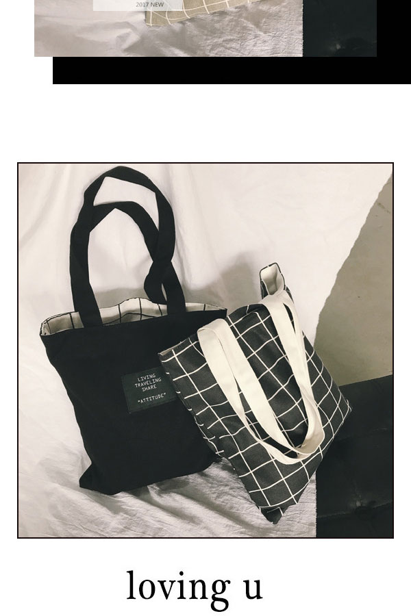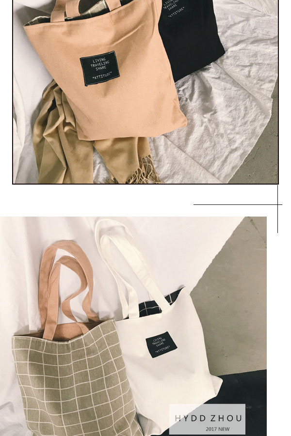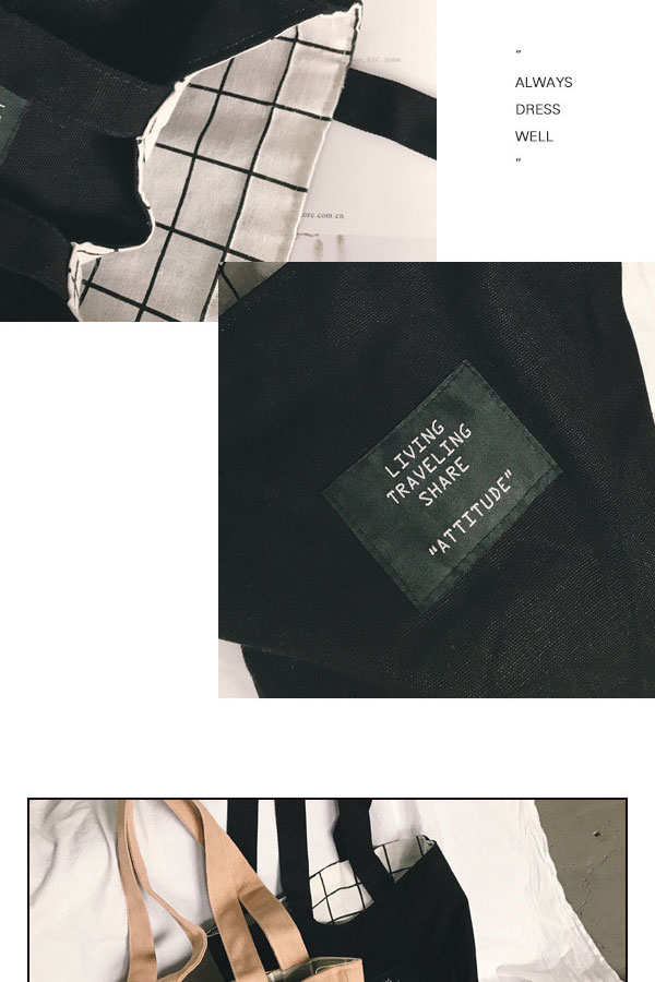 韓版簡約百搭雙面格子帆布袋學生單肩字母帆布包文藝小清新手提包1入
