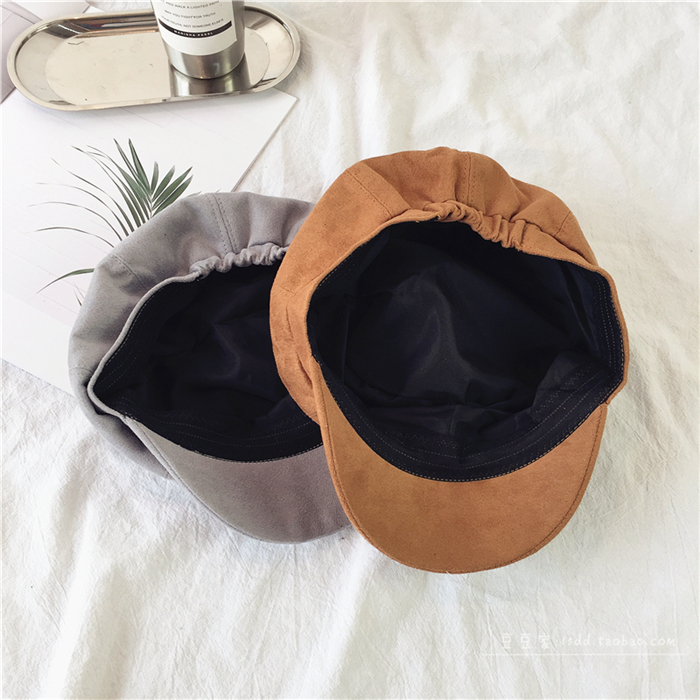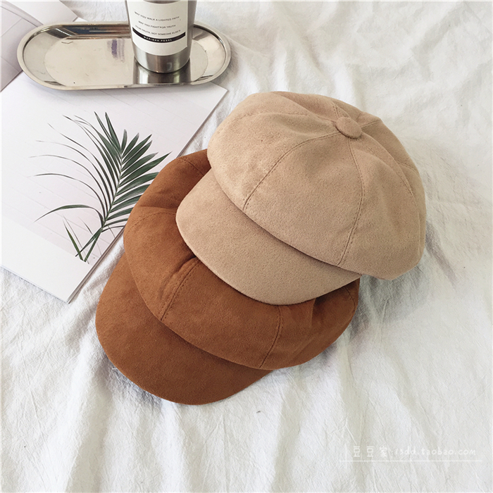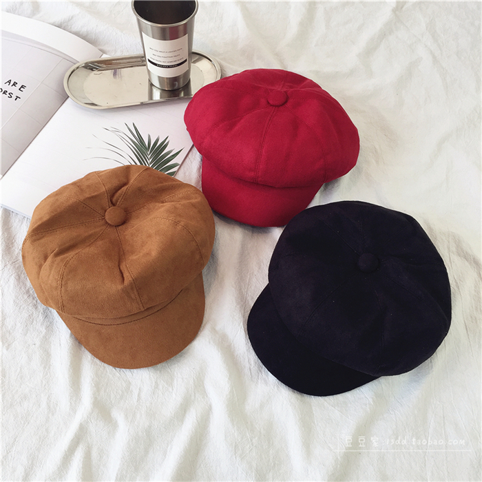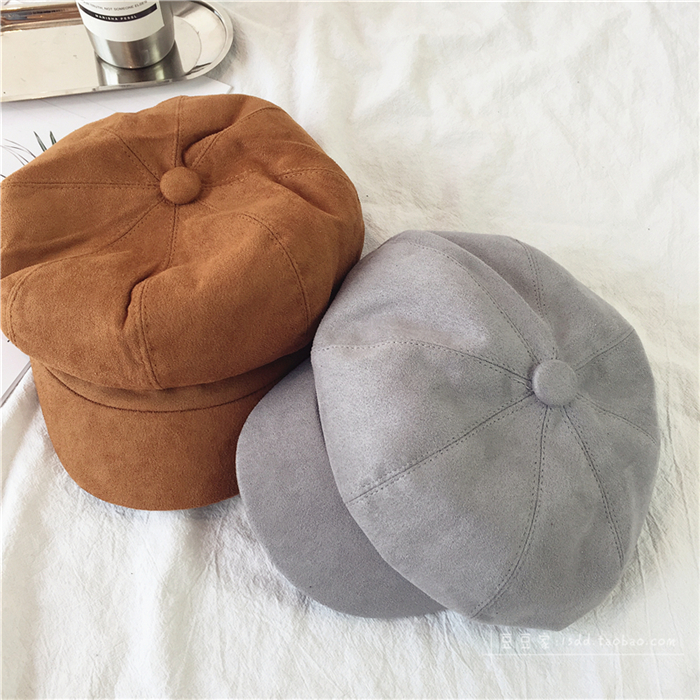 韓國貝雷帽女秋冬麂皮絨八角帽子男英倫畫家帽女士韓版純色鴨舌帽1入