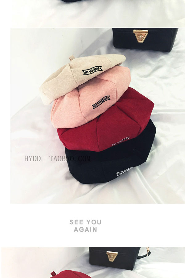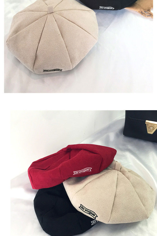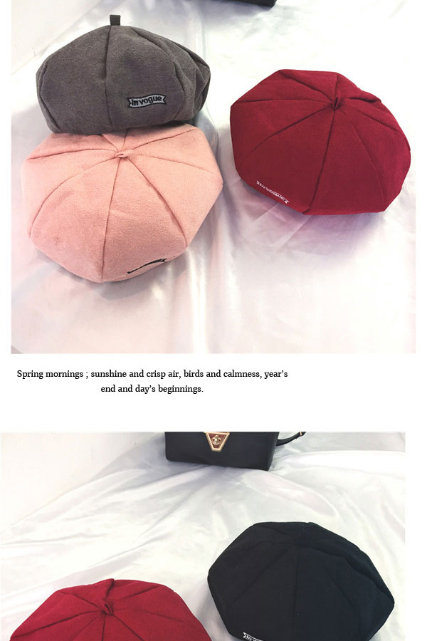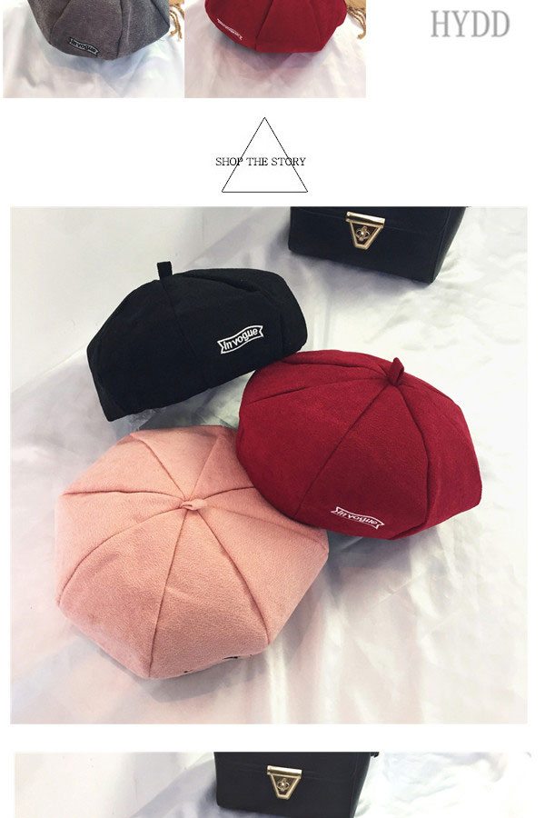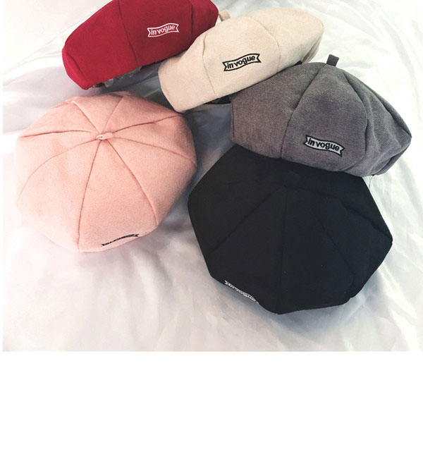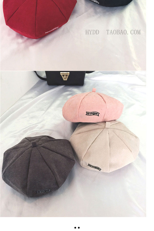 韓版百搭字母貝雷帽女士秋冬南瓜八角帽復古英倫黑色畫家帽子潮1入