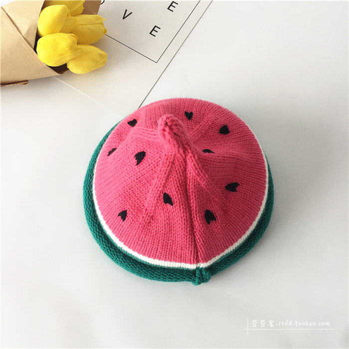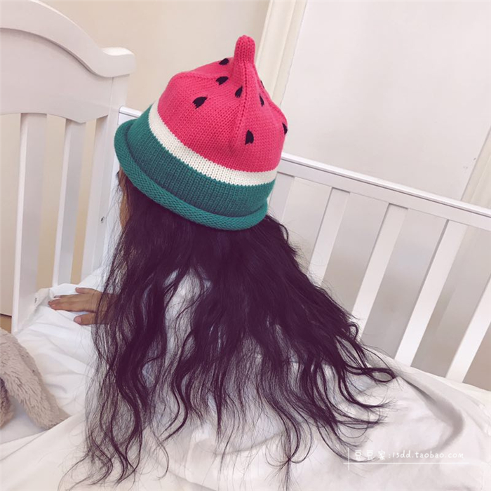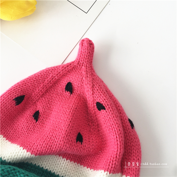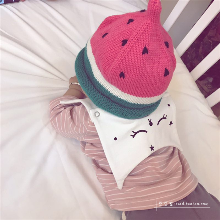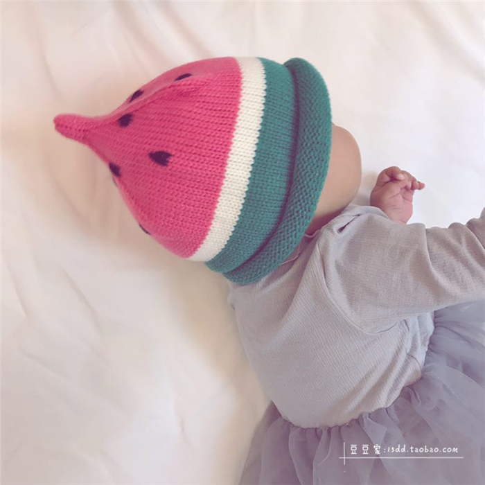 韓版ins秋冬童帽男女童寶寶手工針織帽子西瓜帽兒童保暖毛線帽潮1入