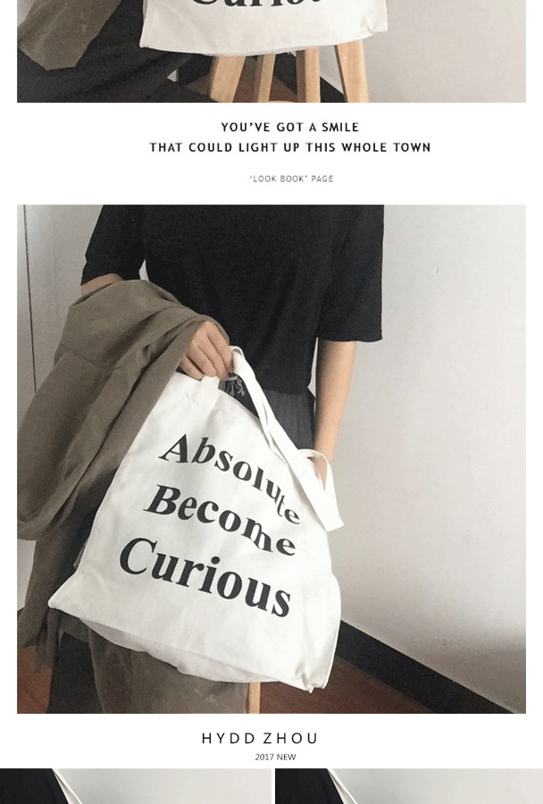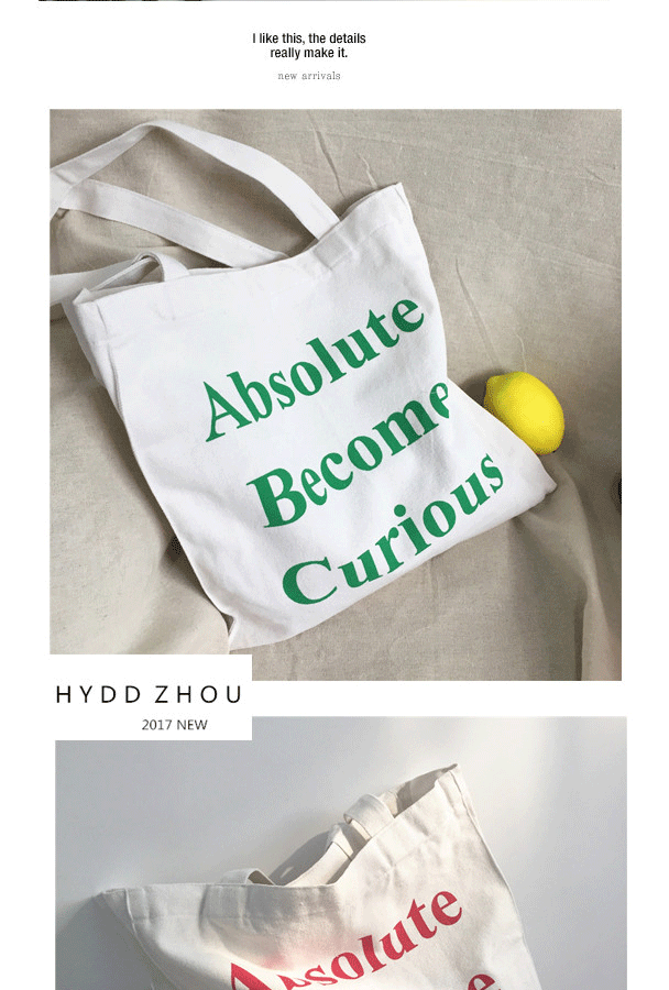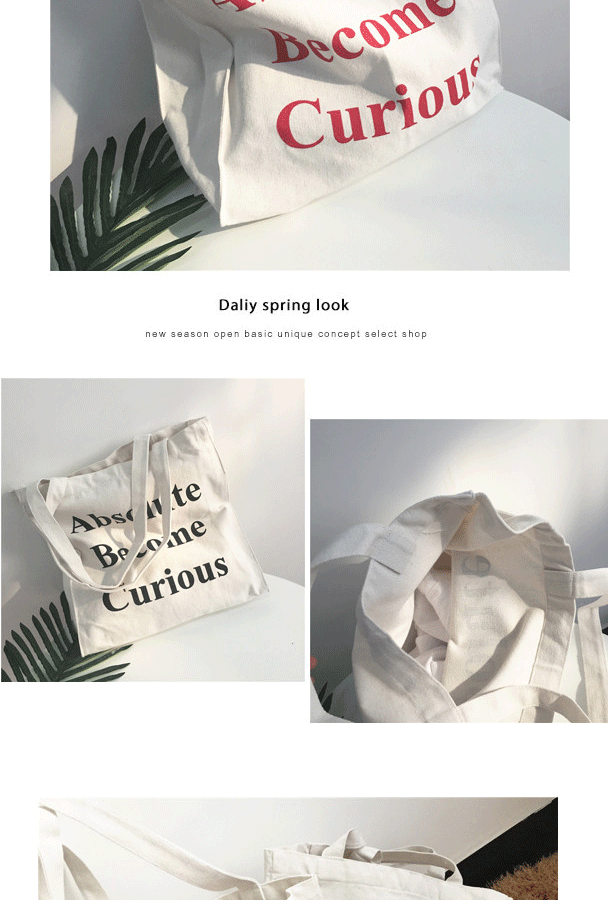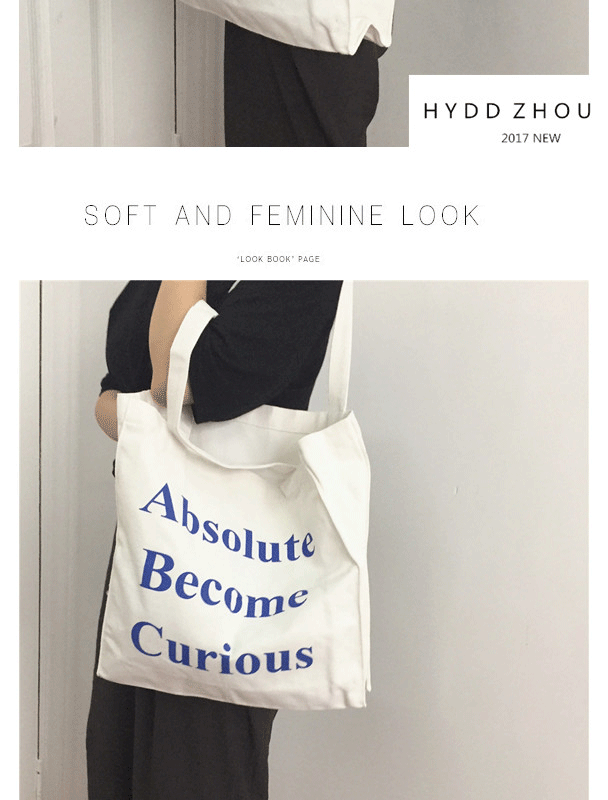 韓國chic復古文藝字母原創小清新帆布袋女包購物袋單肩學生帆布包1入