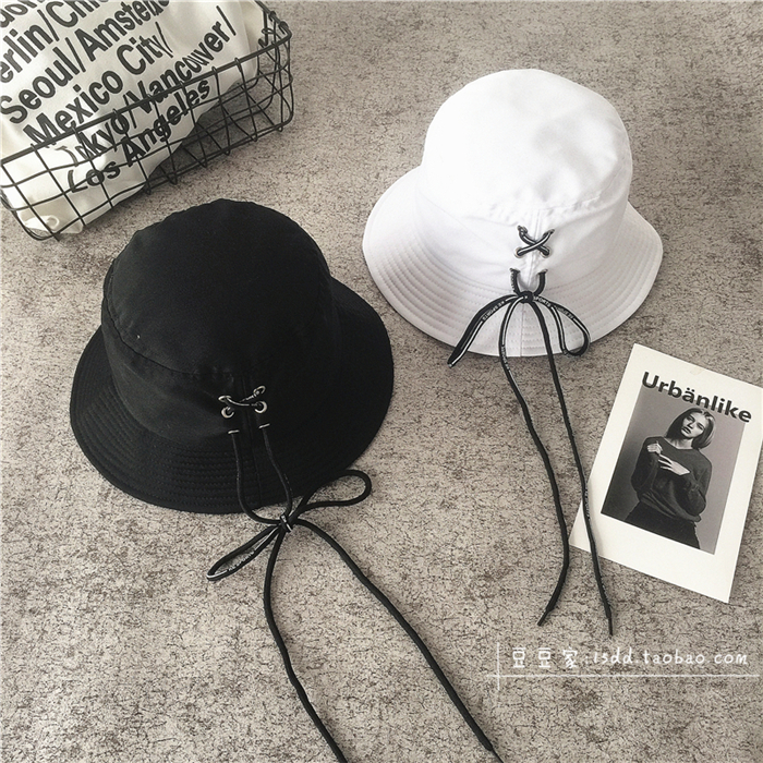 韓國復古時尚綁帶字母盆帽女夏季街頭漁夫帽情侶防曬遮陽帽子男潮1入