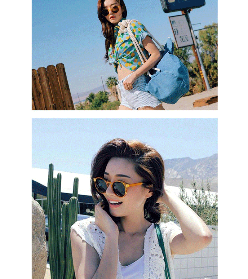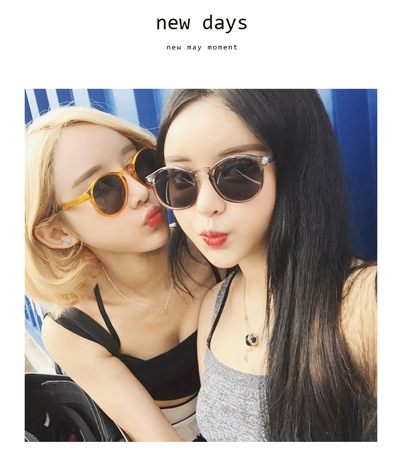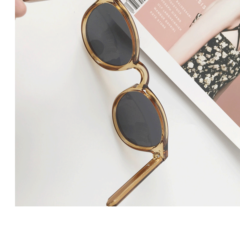 韓國復古度假透明框墨鏡網紅 個性黃色圓框韓版修臉太陽眼鏡潮女1入