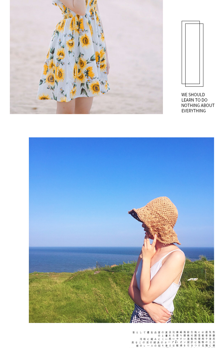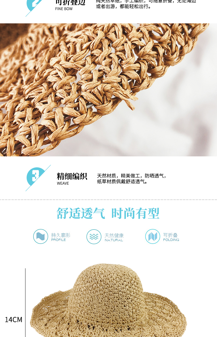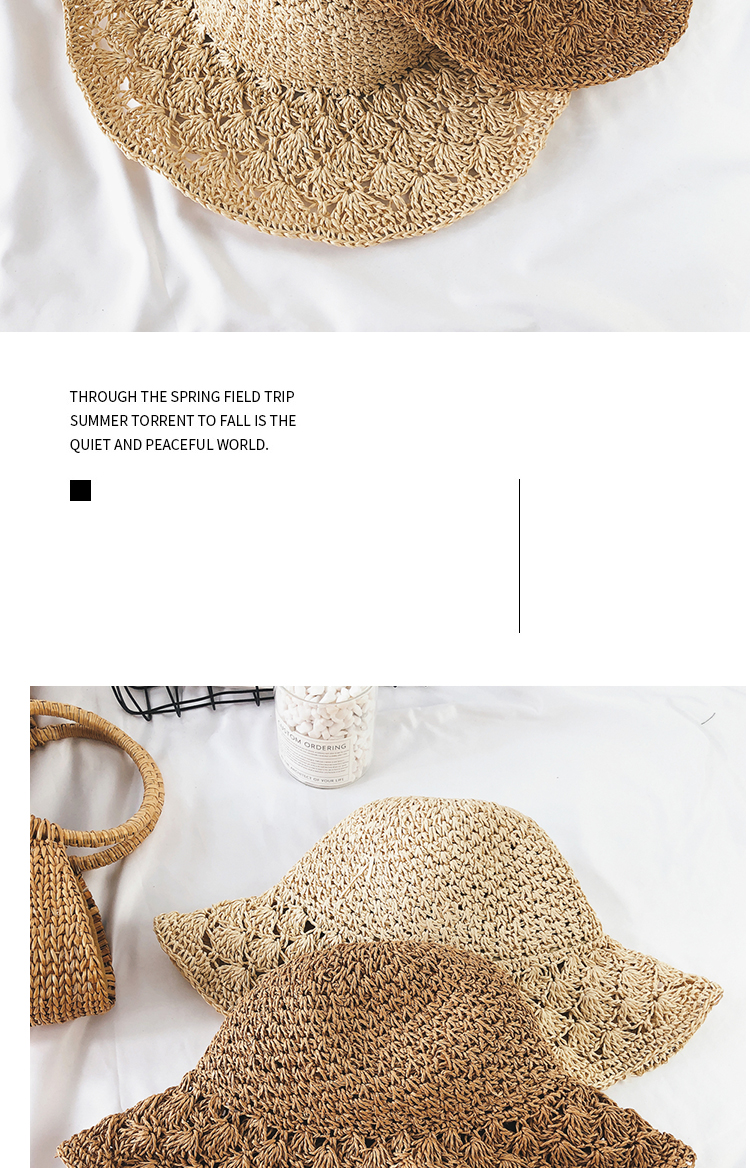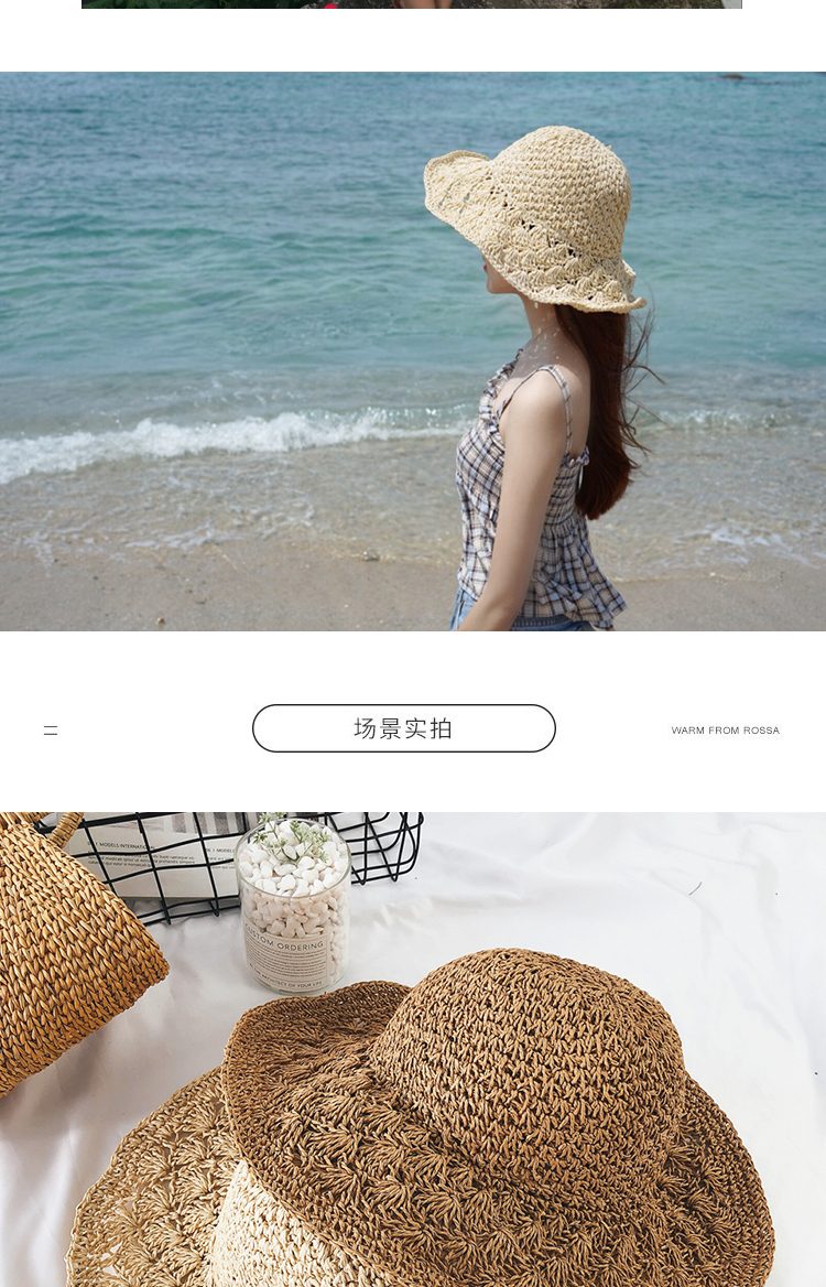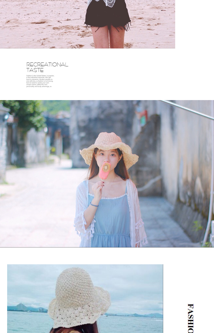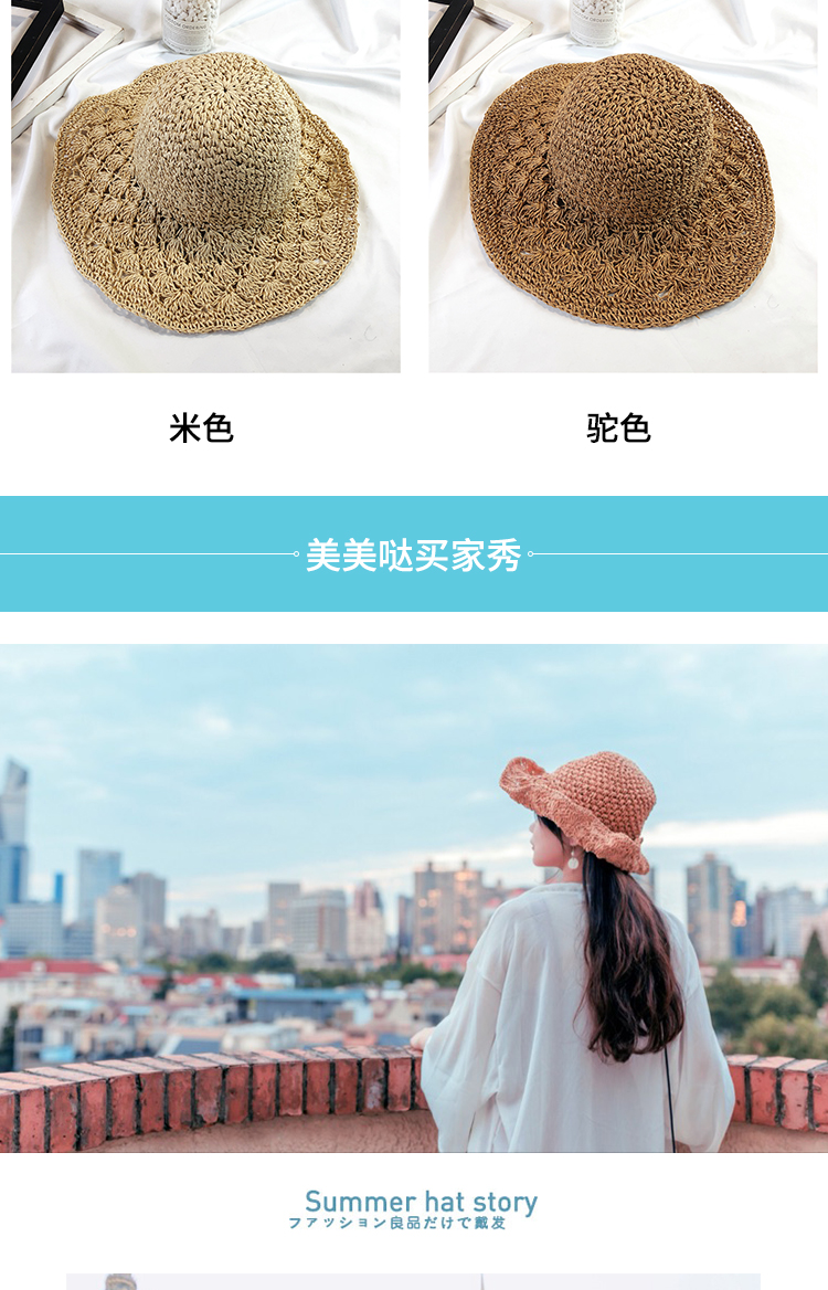 韓版可折疊沙灘草帽女夏天百搭小清新海邊大沿防曬遮陽太陽帽子夏1入