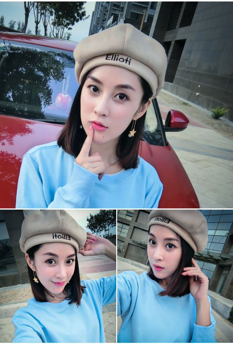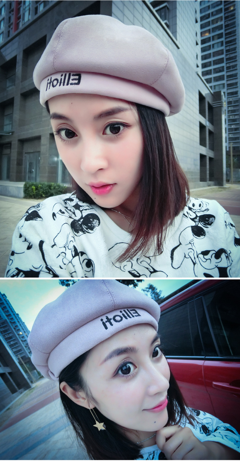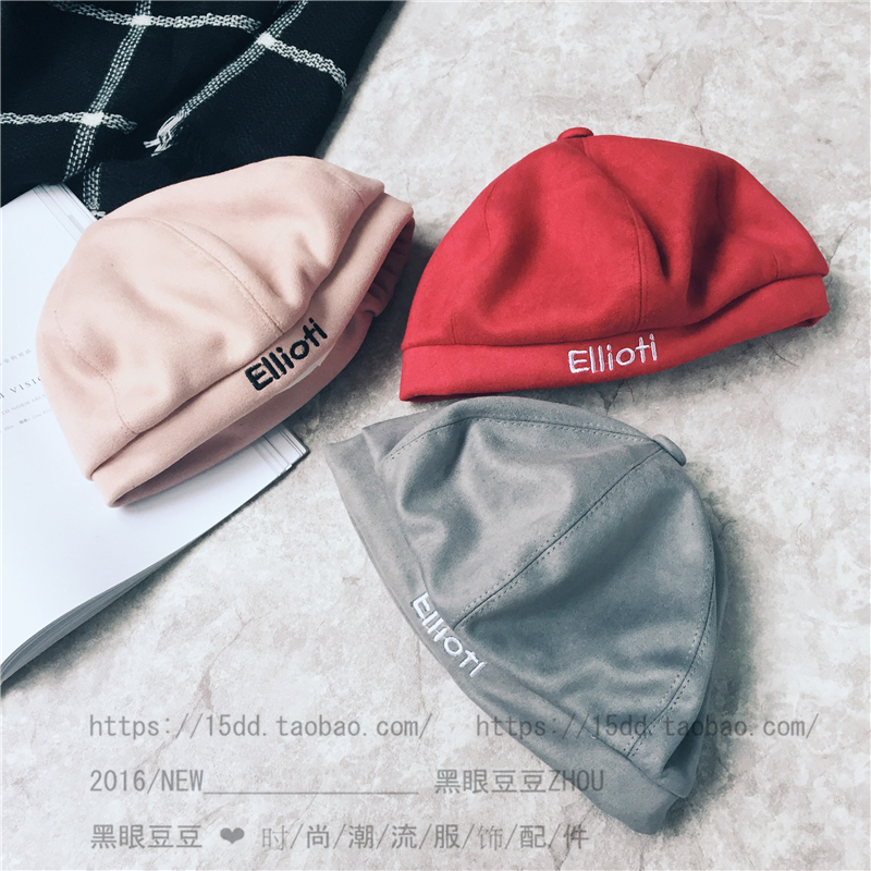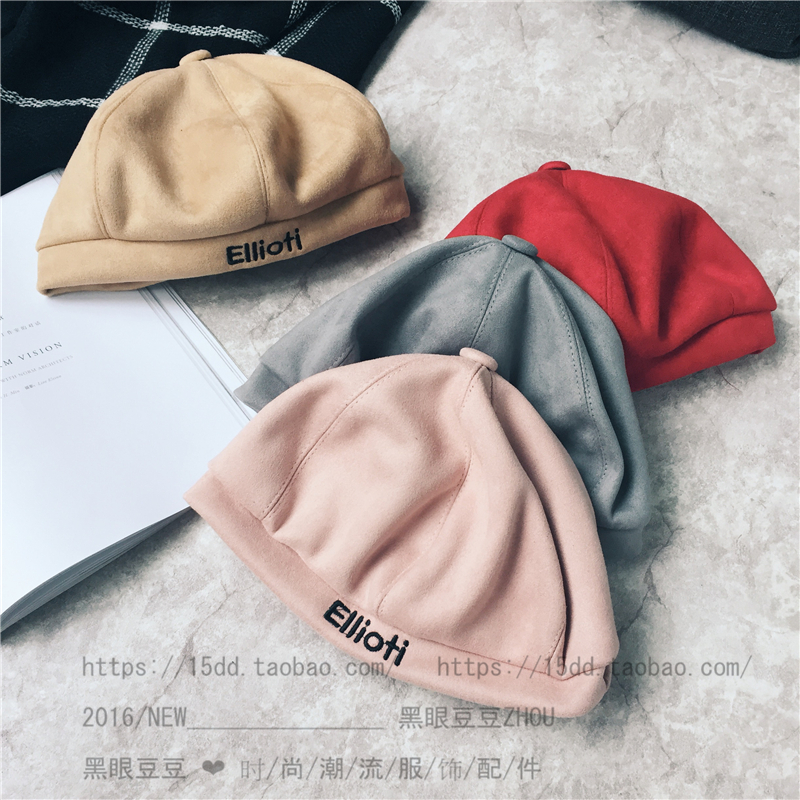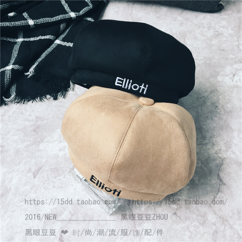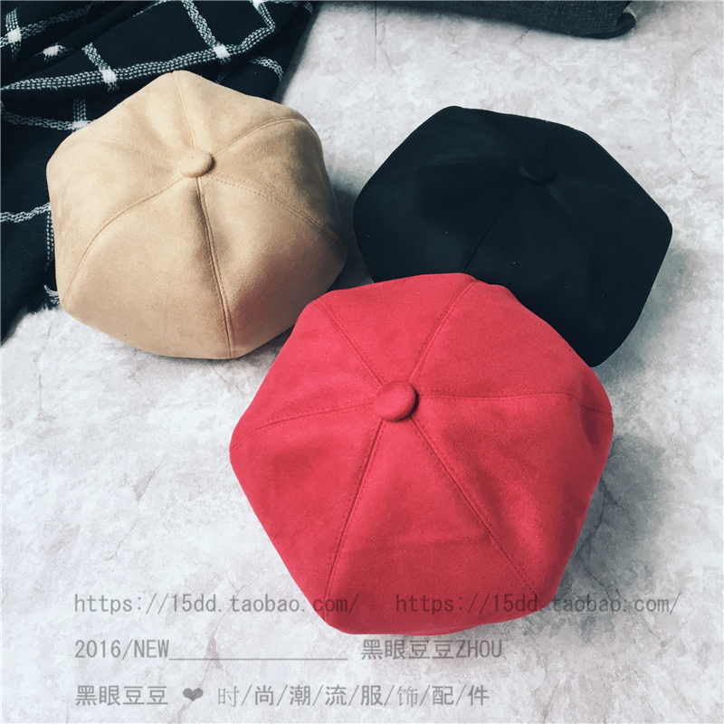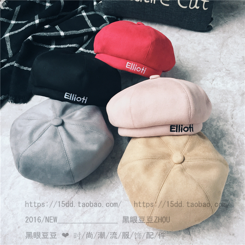 韓版百搭麂皮絨字母貝雷帽八角帽子秋冬天男女士純色南瓜畫家帽潮1入