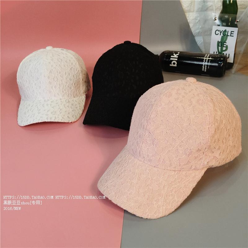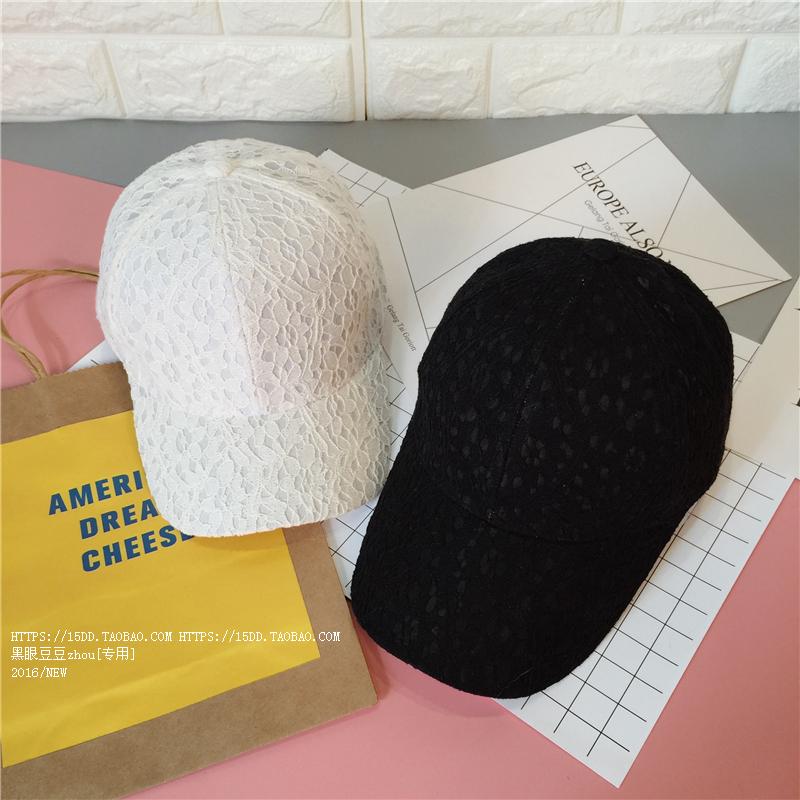 韓國棒球帽子女夏季百搭簡約蕾絲鉤花彎檐帽鴨舌遮陽帽子女韓版潮1入