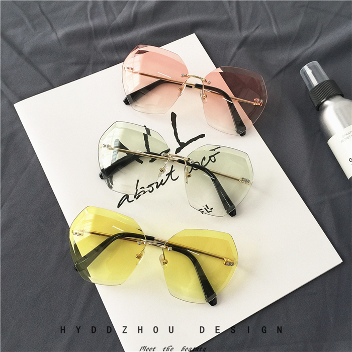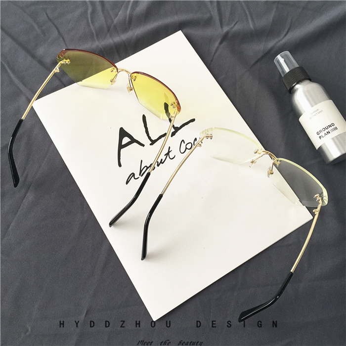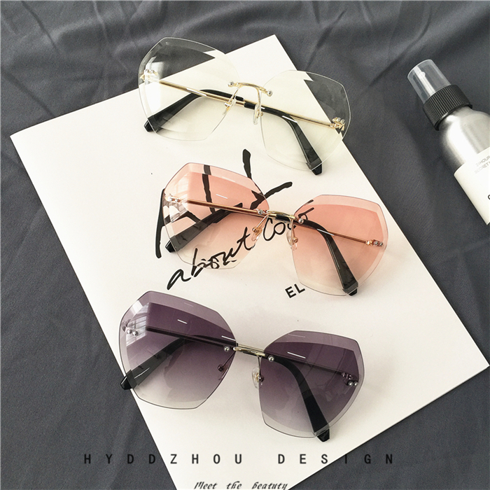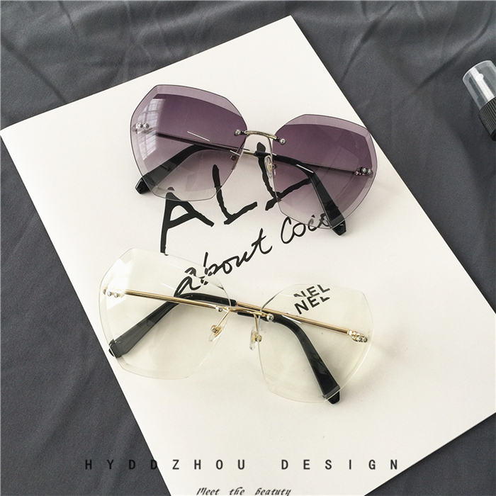 韓版透明方形切邊鏡片太陽鏡顯瘦圓臉金屬時尚墨鏡漸變眼鏡潮男女1入