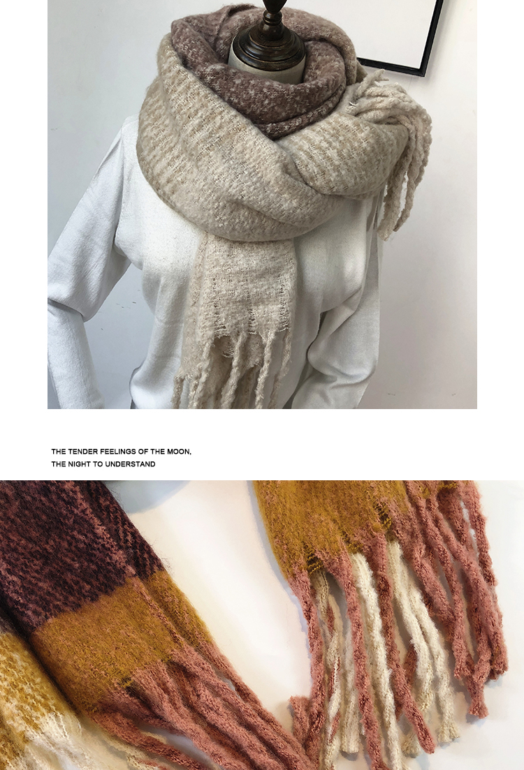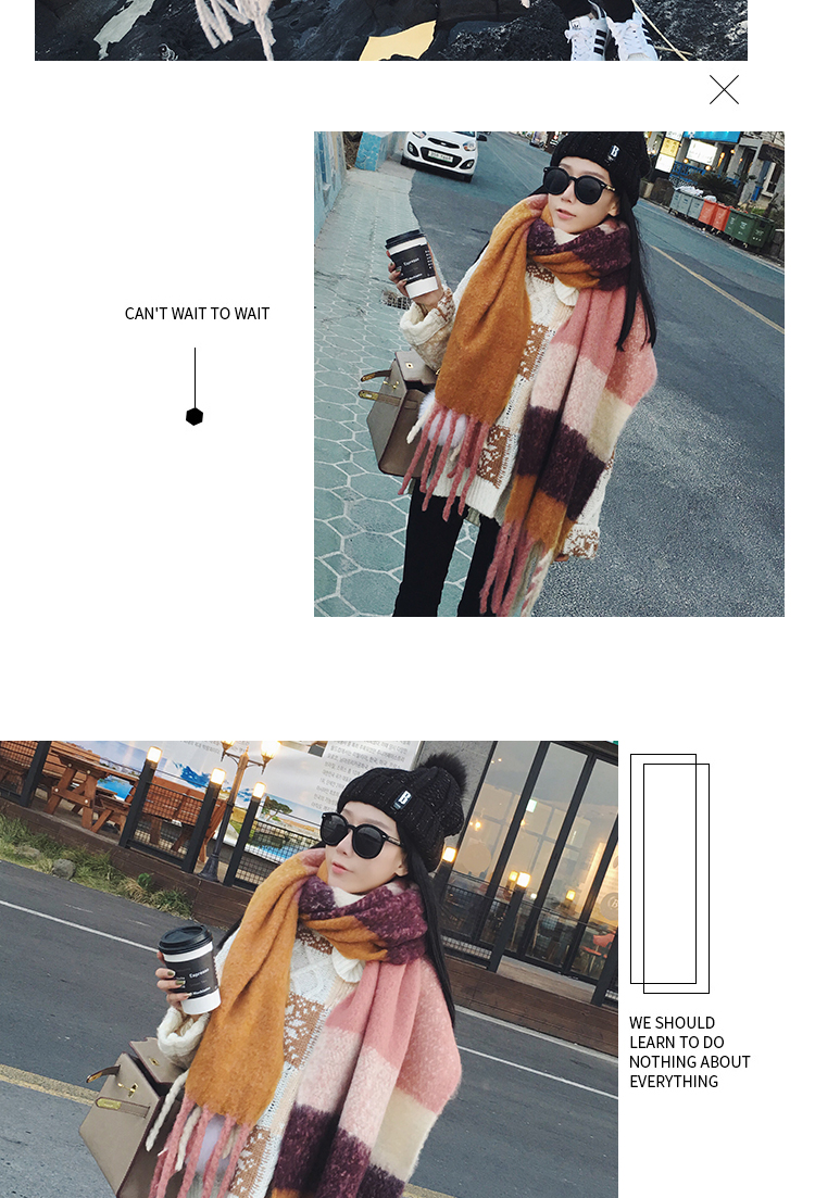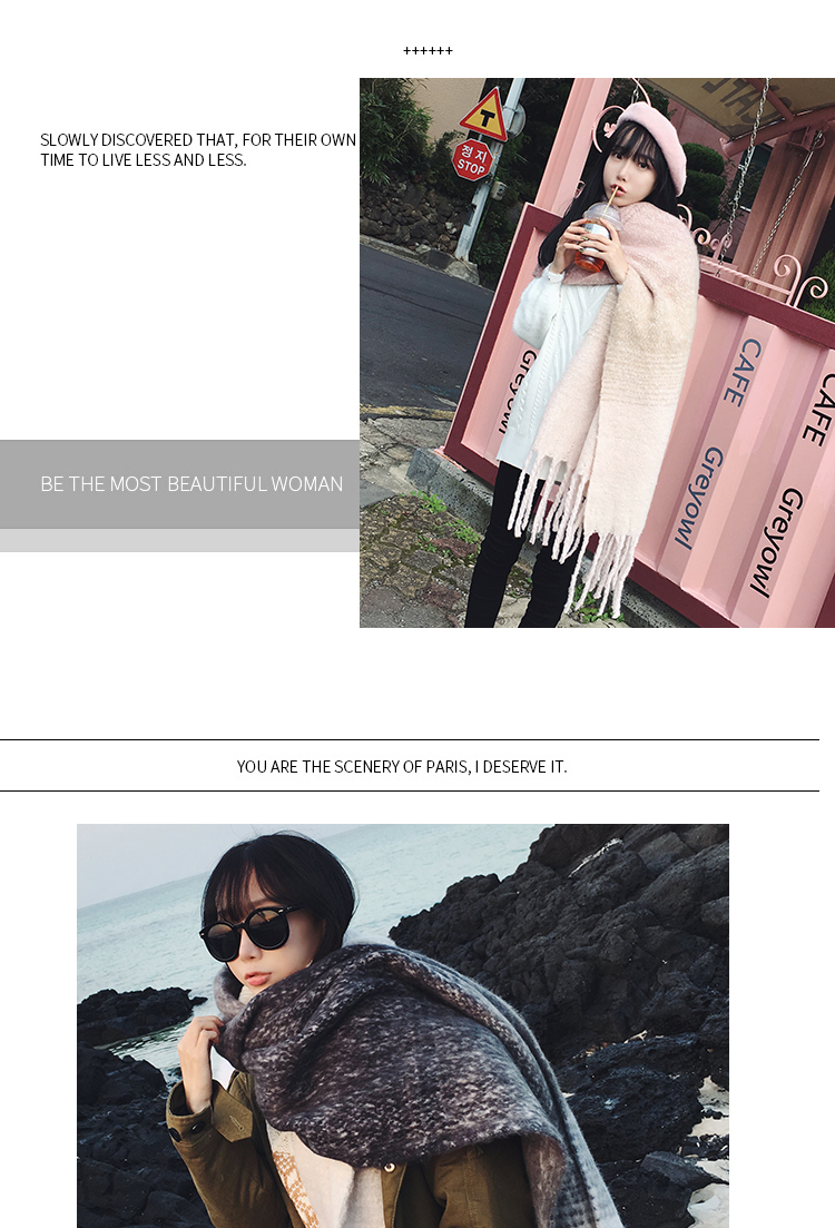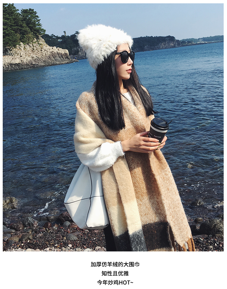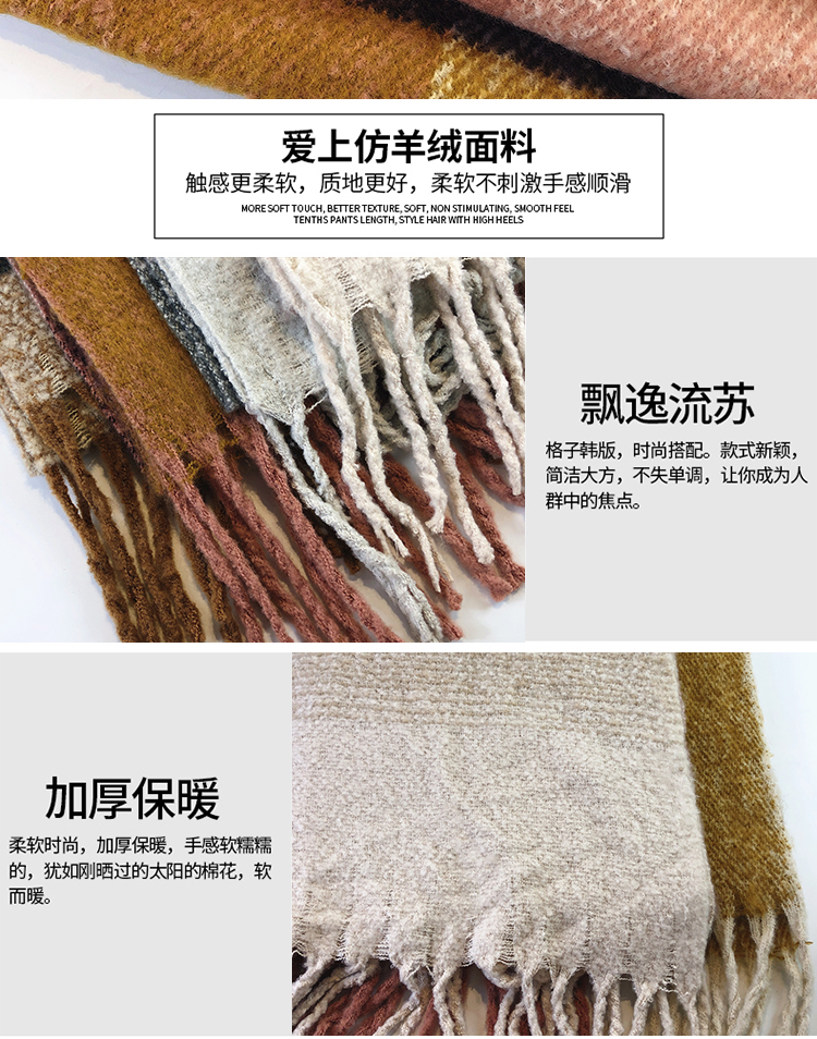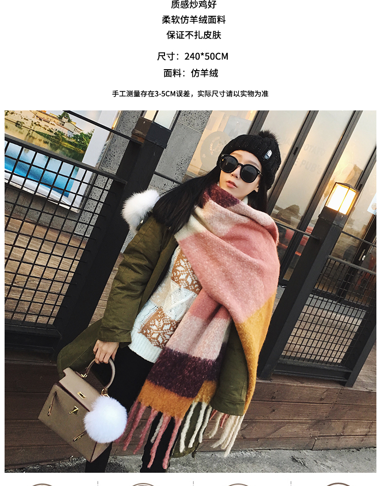 韓范拼色長流蘇仿羊絨圍巾女士加厚保暖披肩雙用圍脖秋冬季學生潮1入