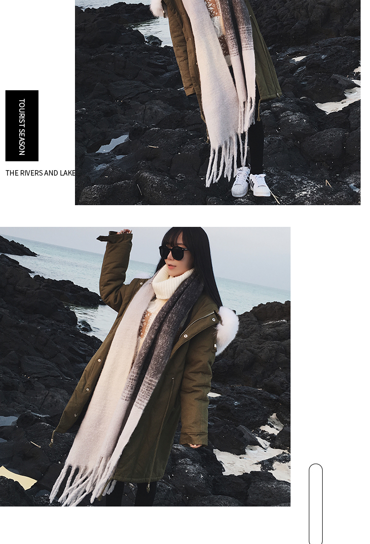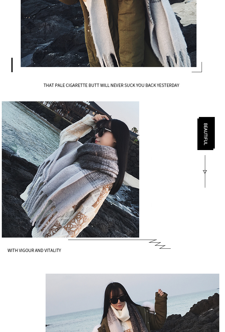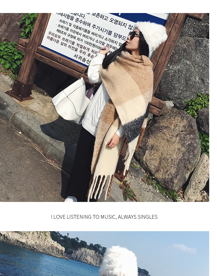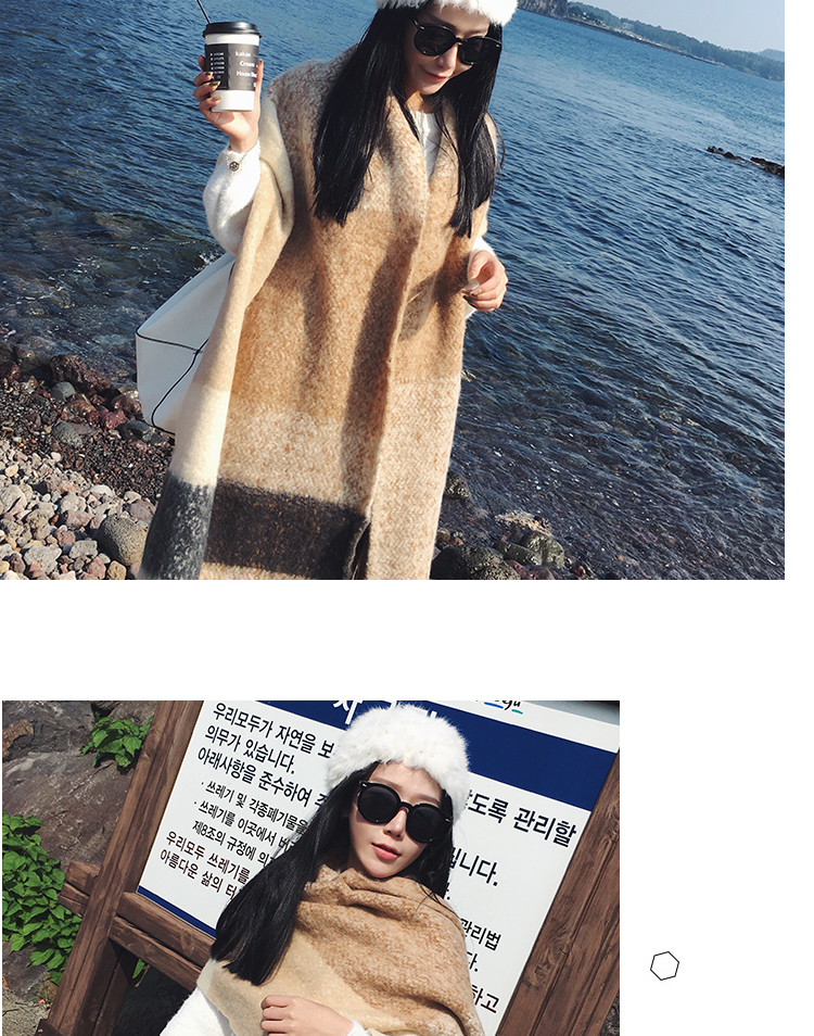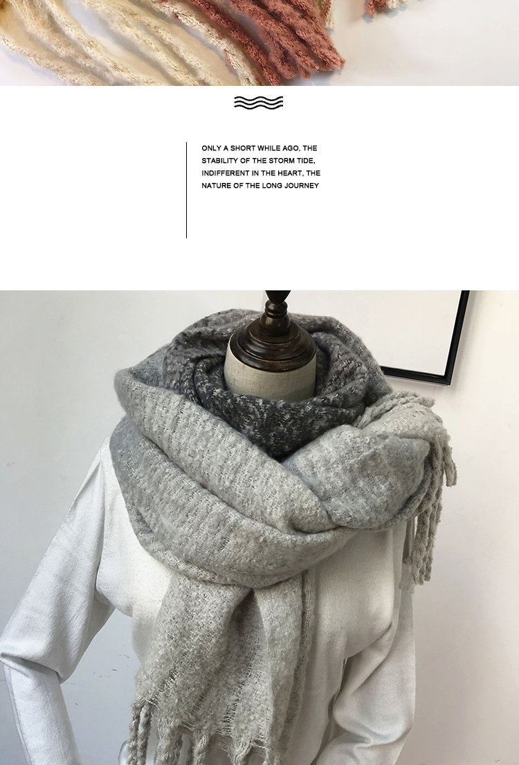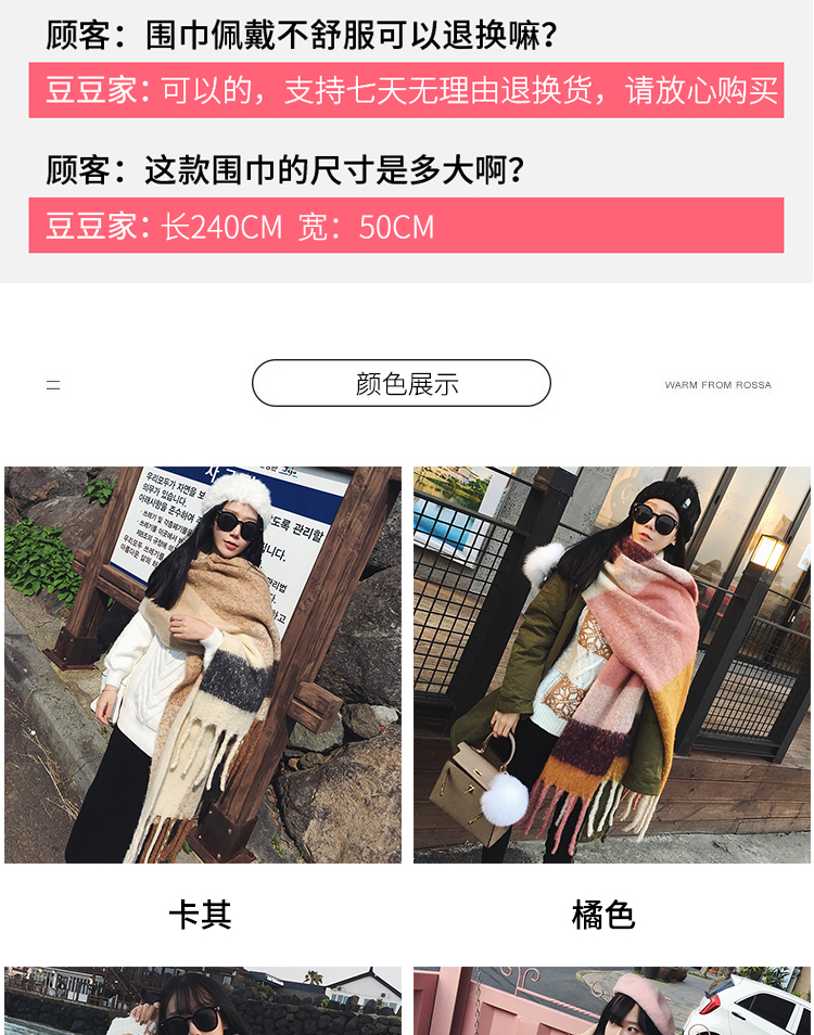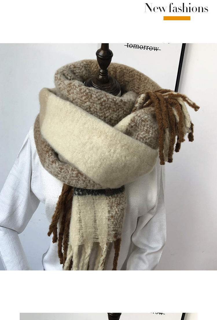 韓范拼色長流蘇仿羊絨圍巾女士加厚保暖披肩雙用圍脖秋冬季學生潮1入
