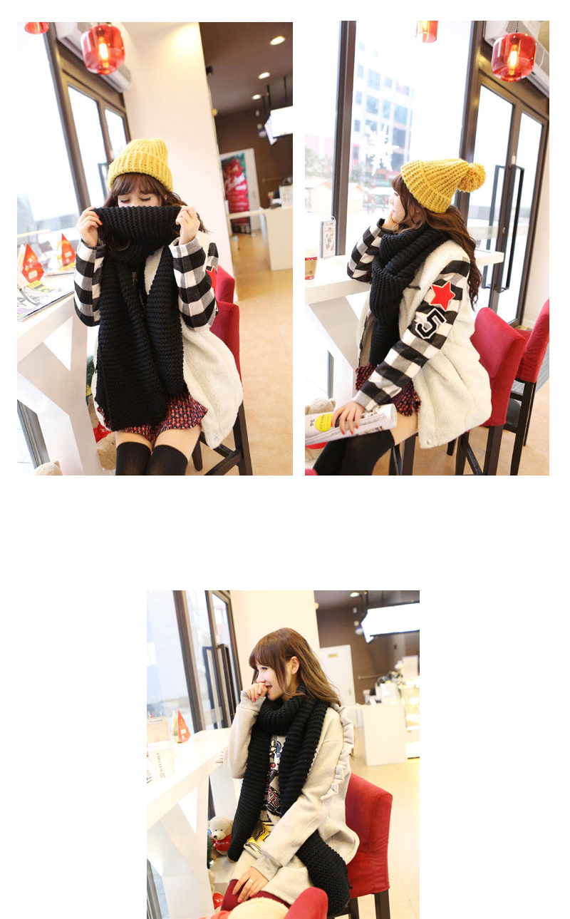 韓版粗毛線圍巾女秋冬季學生韓國長款加厚保暖情侶圍脖男純色針織1入