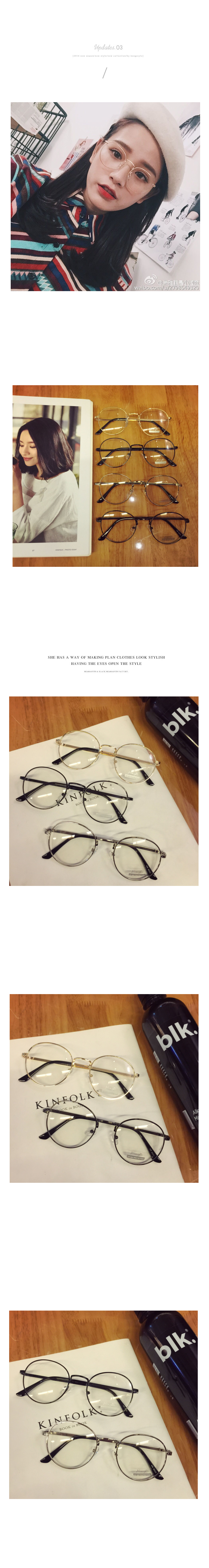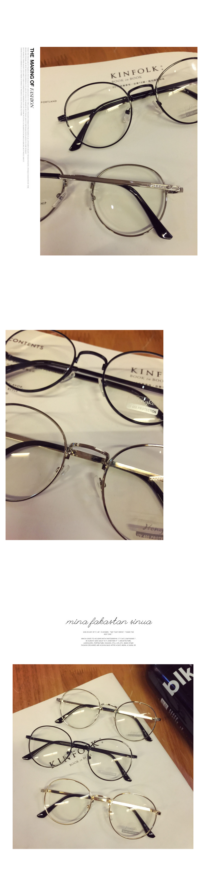 韓版金屬圓形眼鏡框女潮男款超輕復古文藝細框透明眼鏡架平光眼鏡1入