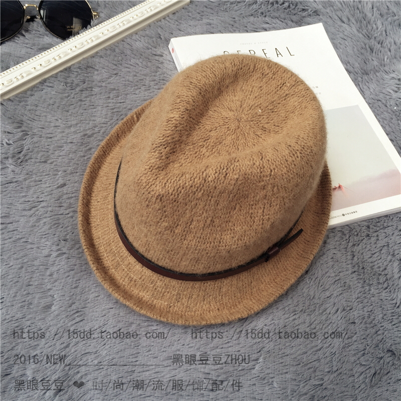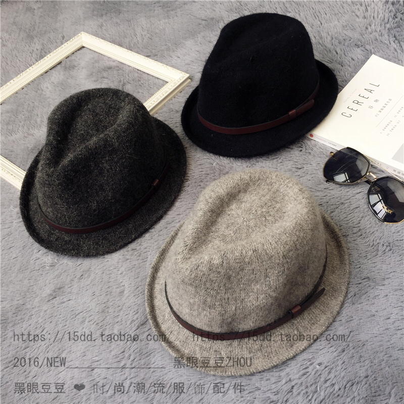 韓版秋冬英倫時尚復古皮帶羊毛禮帽卷邊男女士錐頂優雅爵士帽子潮1入