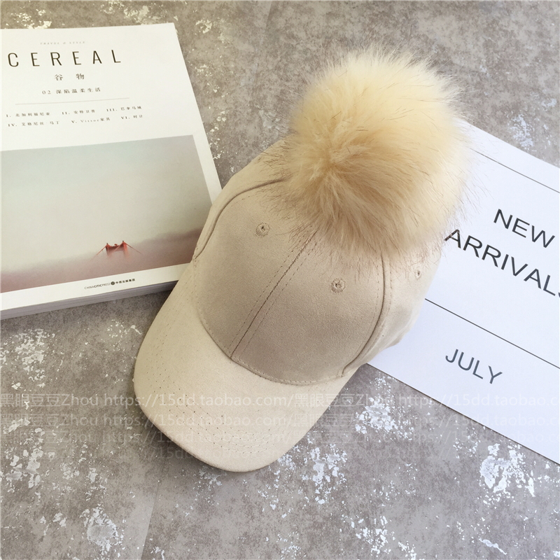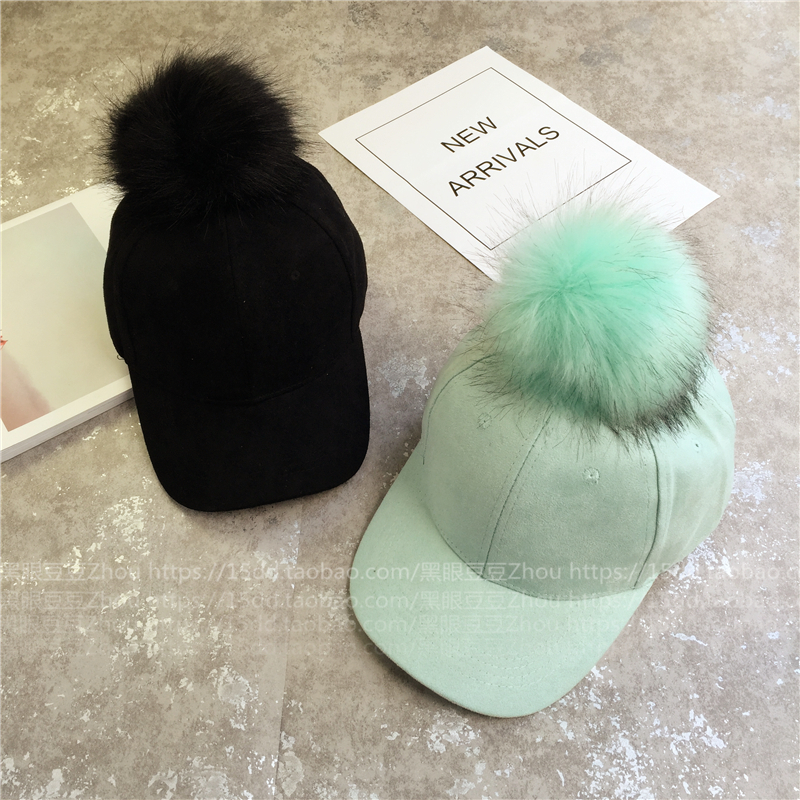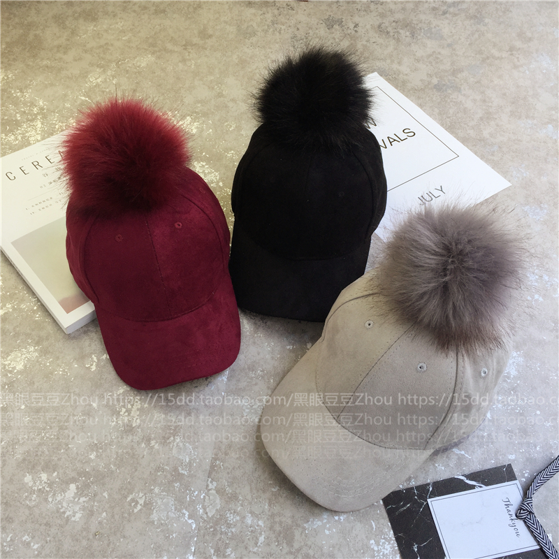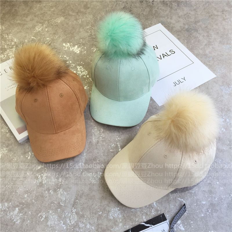 韓國時尚大毛球麂皮絨棒球帽女士糖果色春秋彎檐鴨舌帽遮陽嘻哈帽1入