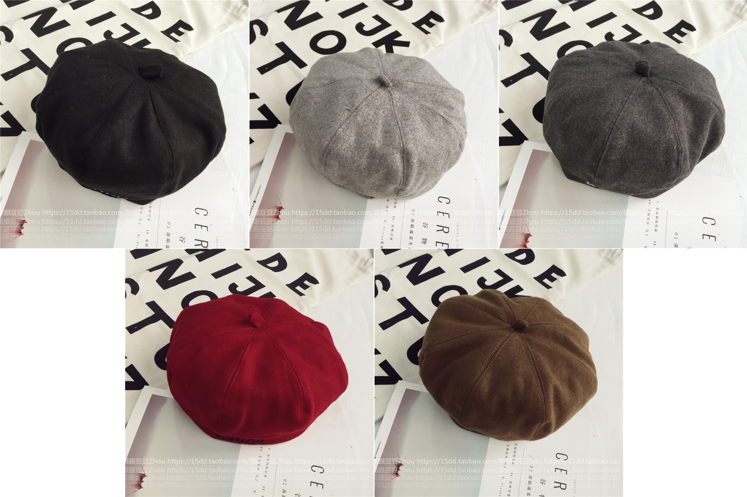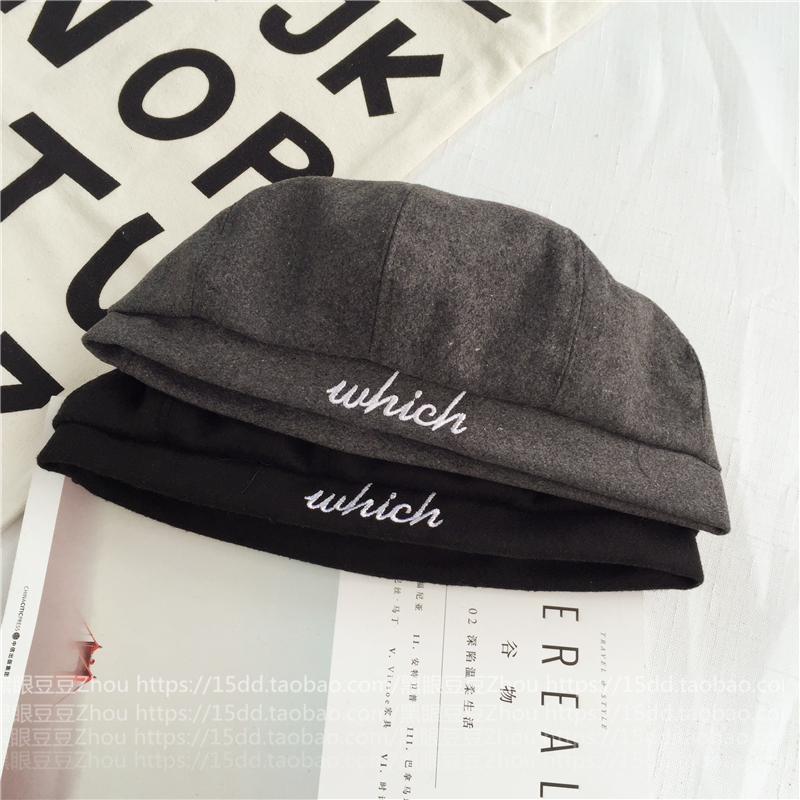 韓國休閑字母毛呢八角帽女士韓版潮秋冬天出游貝雷帽畫家帽南瓜帽1入