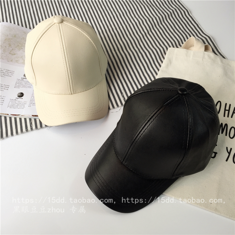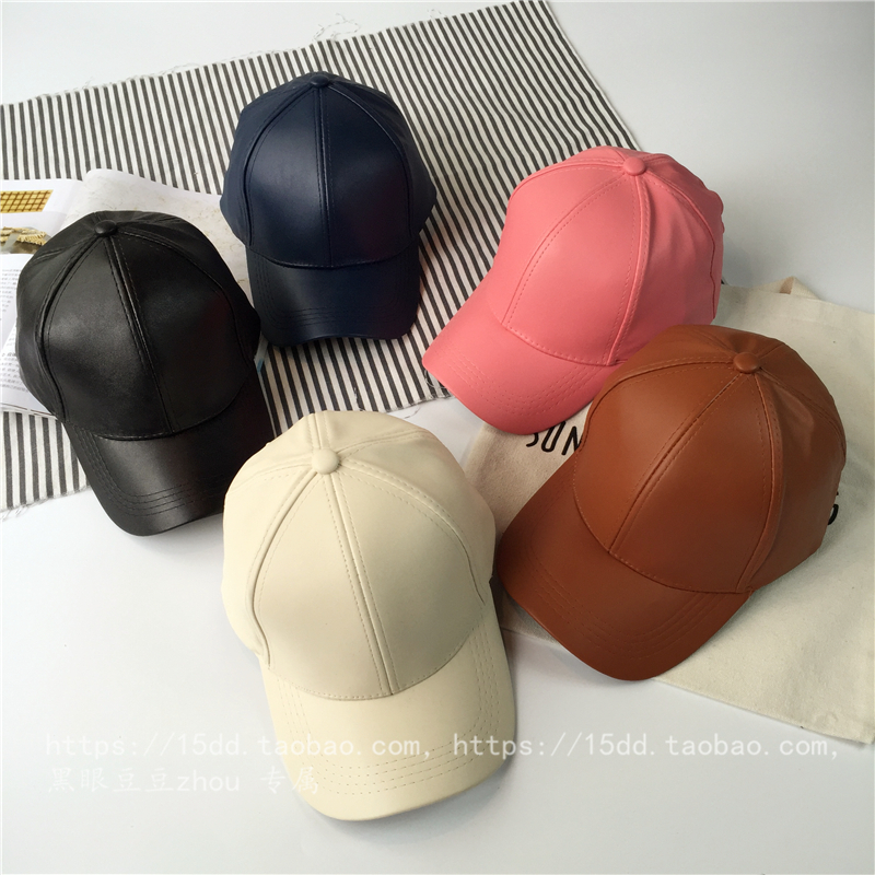 韓國PU皮質棒球帽馬卡龍色鴨舌帽子韓版遮陽嘻哈帽子男女戶外百搭1入