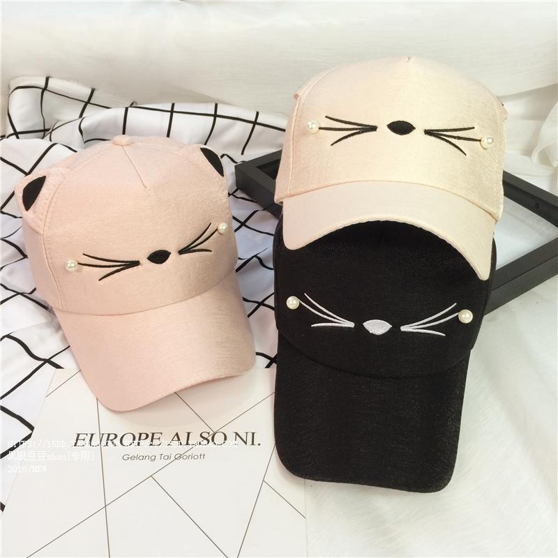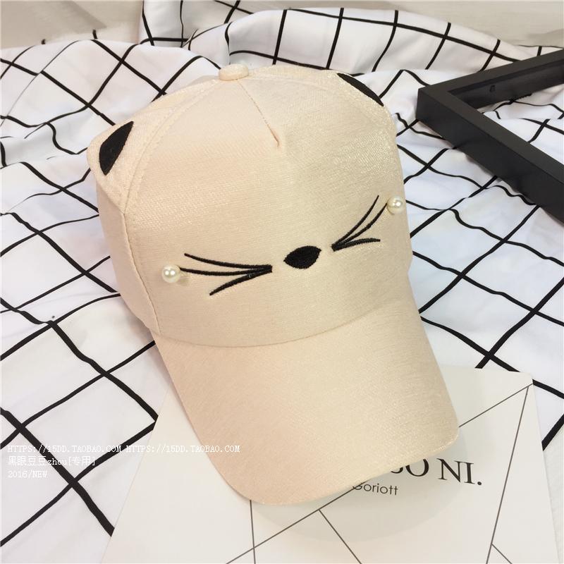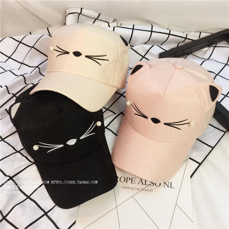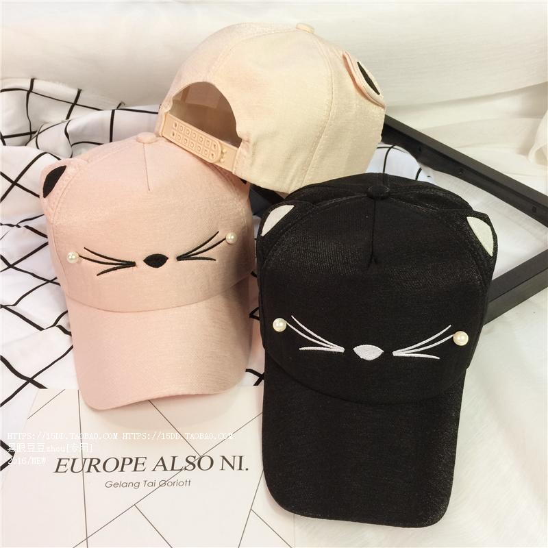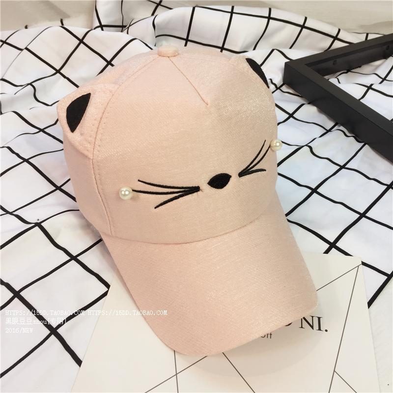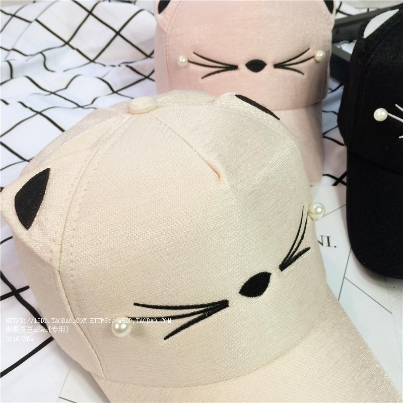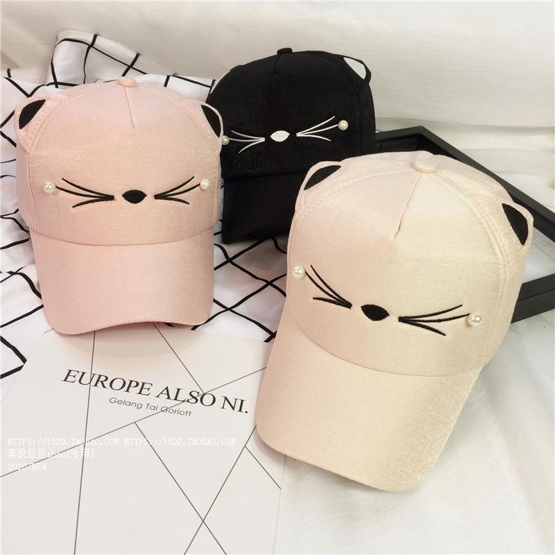 韓版可愛貓咪耳朵夏天鴨舌棒球帽子女韓版百搭戶外休閑遮陽帽潮夏1入
