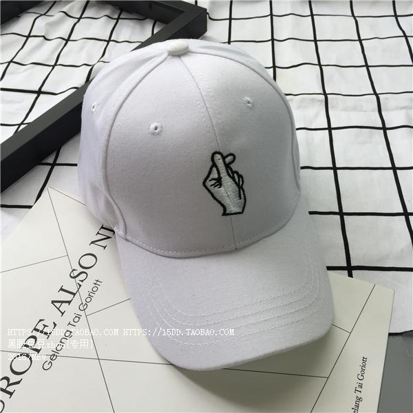 韓國潮流明星愛心手指勢棒球帽子男女春夏天嘻哈彎檐鴨舌帽遮陽帽1入