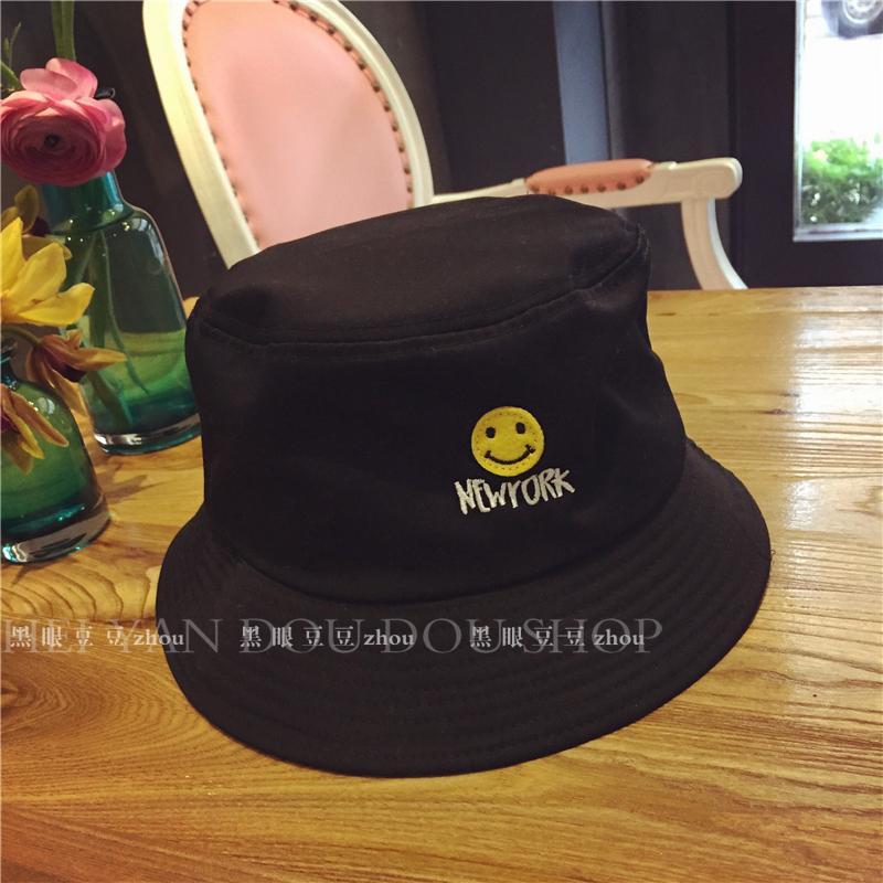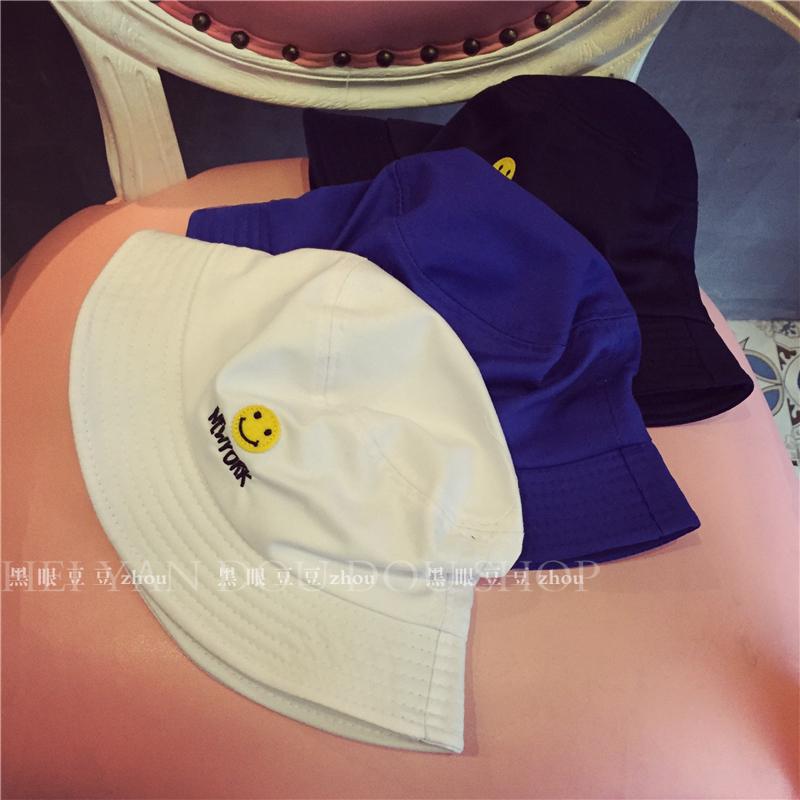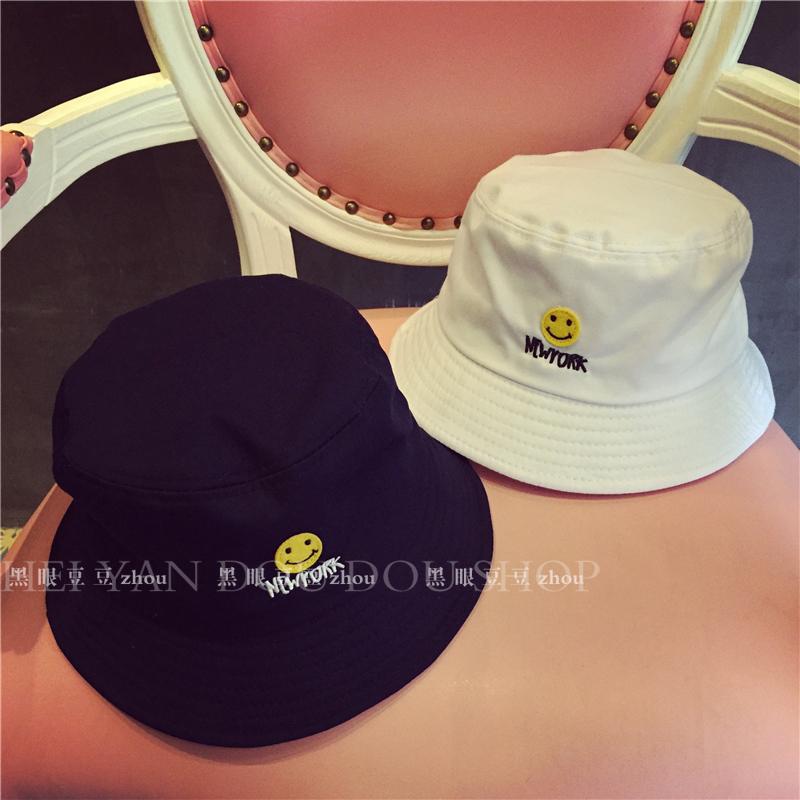韓國學生軟萌原宿笑臉平頂漁夫帽子男女夏防曬遮陽帽盆帽布帽折疊1入