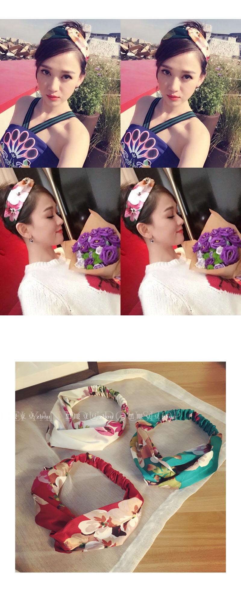 韓國學生印花復古發帶陳喬恩同款歐美風名媛花朵頭巾頭飾松緊發箍1入