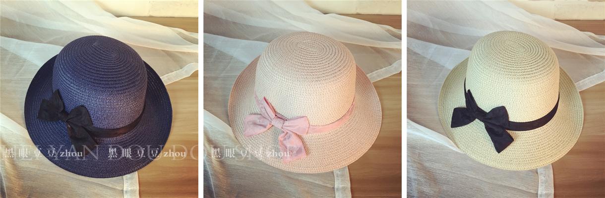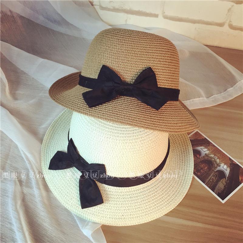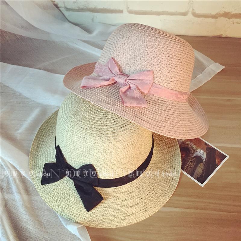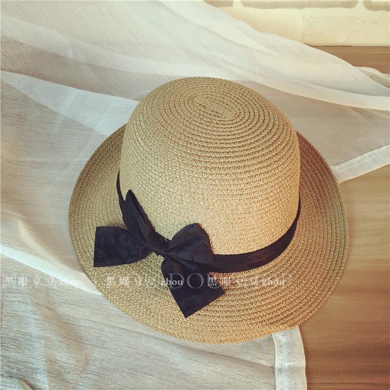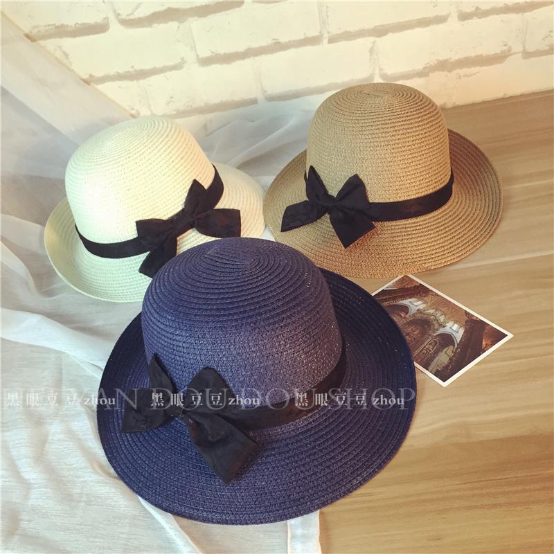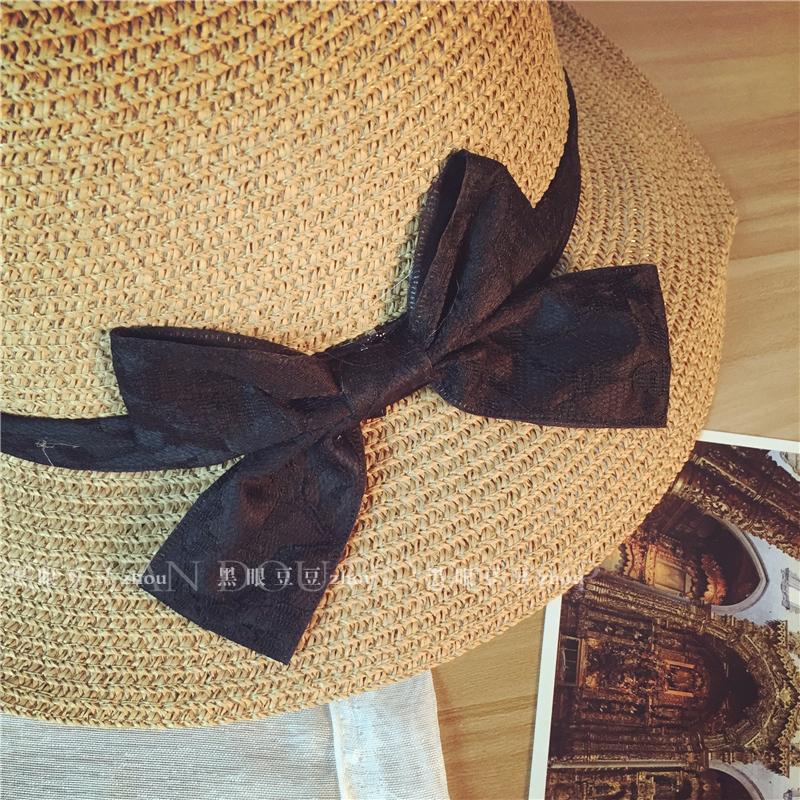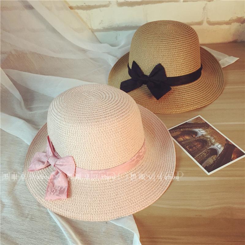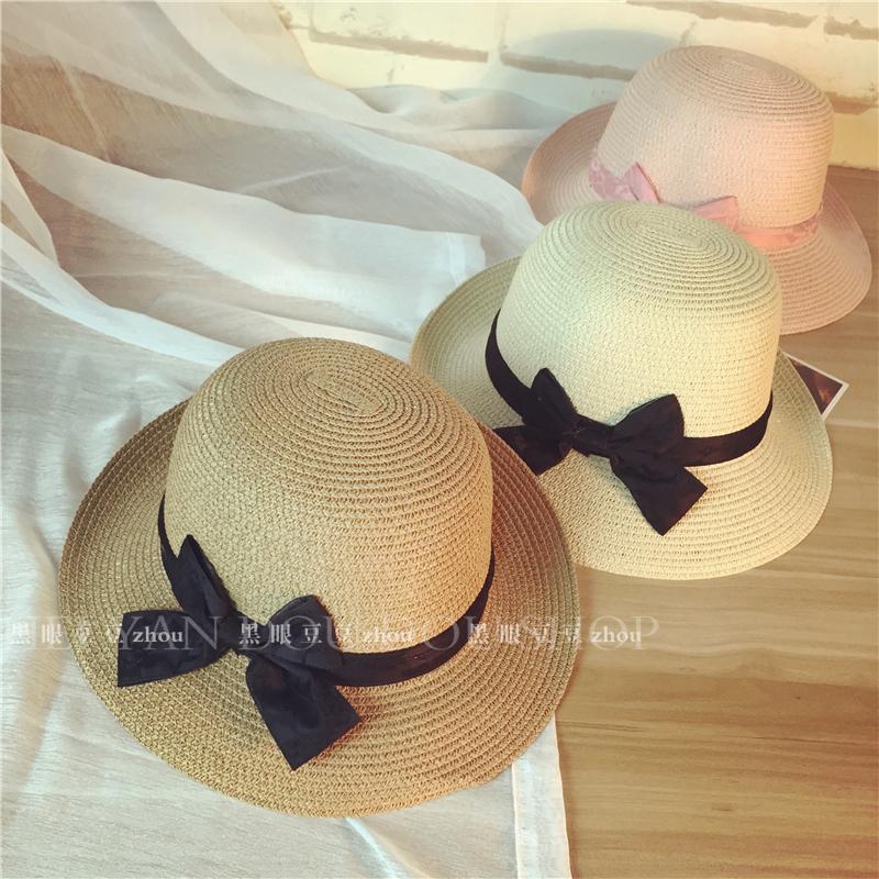 韓版復古蝴蝶結大檐遮陽帽女夏天沙灘防曬卷邊度假草帽海邊潮1入