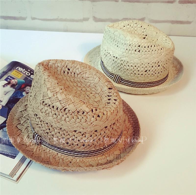 韓國簡約拉菲草手工編織禮帽草帽女可折疊遮陽街頭時尚百搭帽子男1入