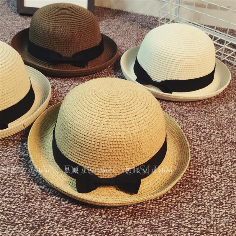 韓版夏天禮帽女英倫百搭日系小清新草帽遮陽太陽沙灘帽防曬帽子夏1入