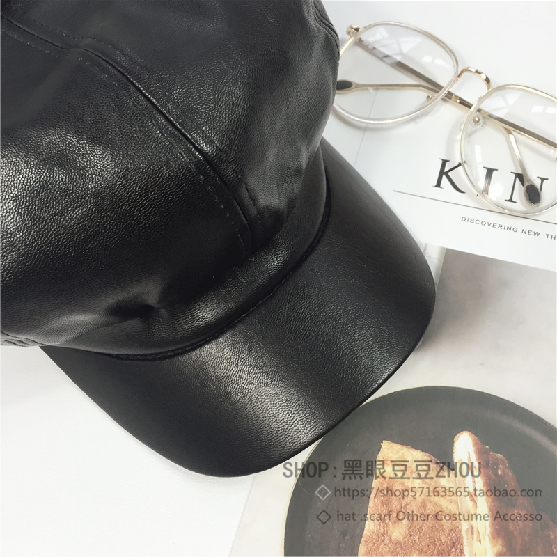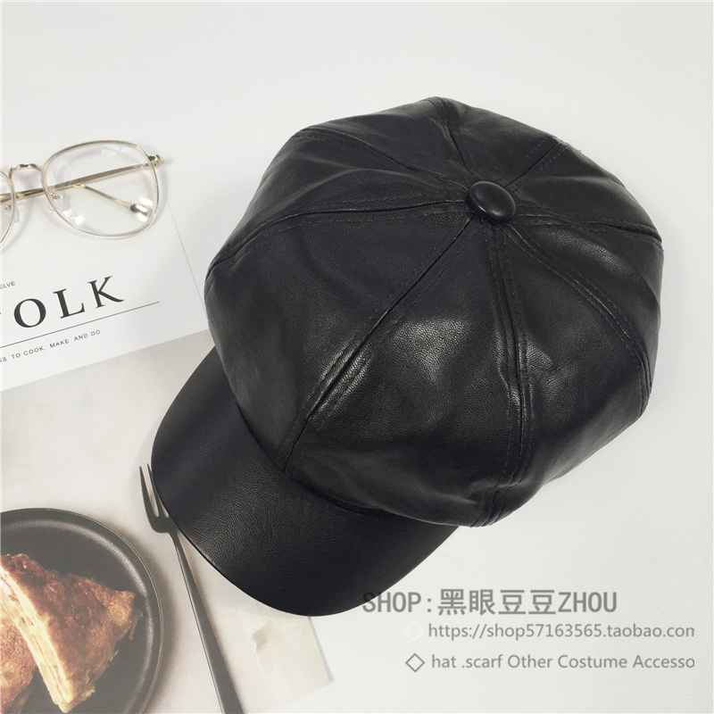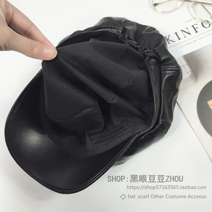 韓國帽子女冬天百搭黑色皮帽南瓜八角帽韓版秋冬英倫鴨舌帽貝雷帽1入