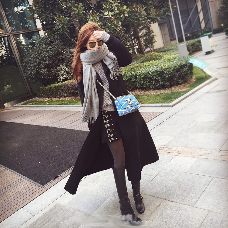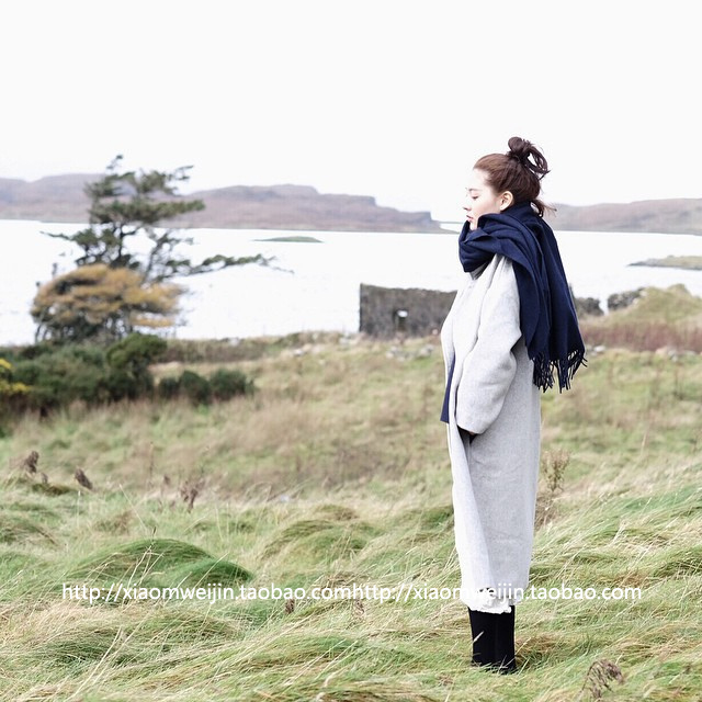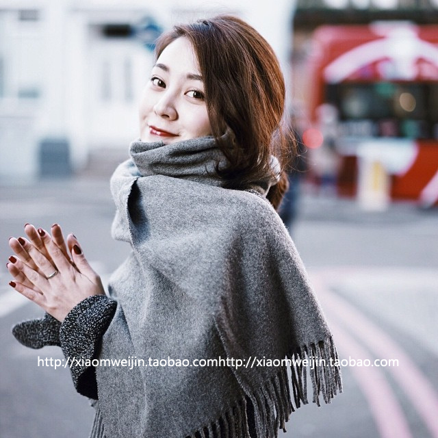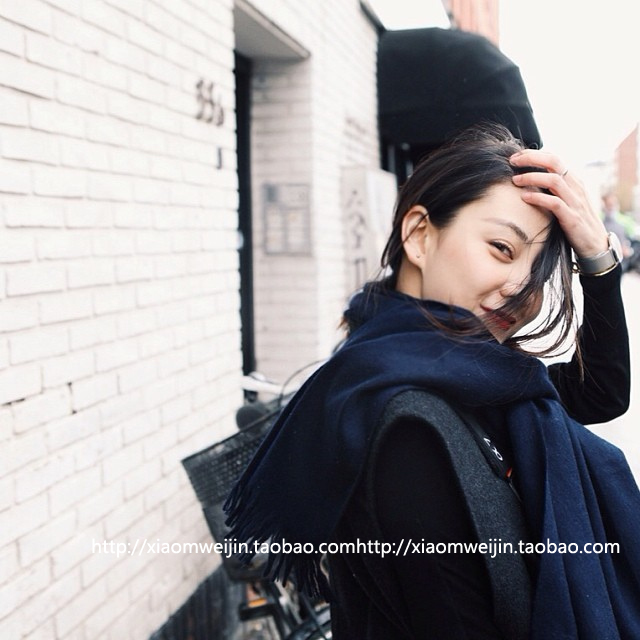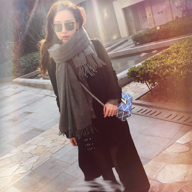 韓版純色仿羊絨圍巾女士秋冬季長款超大毛線披肩加厚保暖學生圍脖1入
