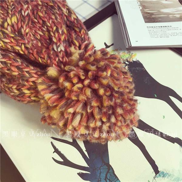 韓國冬季大球球混色麻花毛線帽子韓版加厚保暖針織帽女士潮秋冬天1入