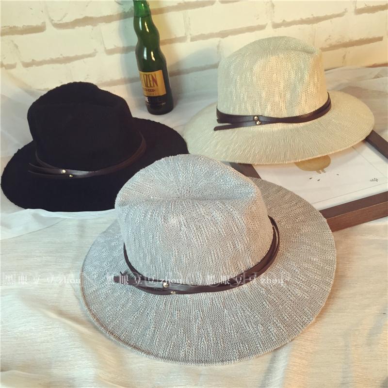 2018夏季新款女士休閑沙灘爵士帽黑色大沿檐遮陽防曬編織禮帽女夏1入