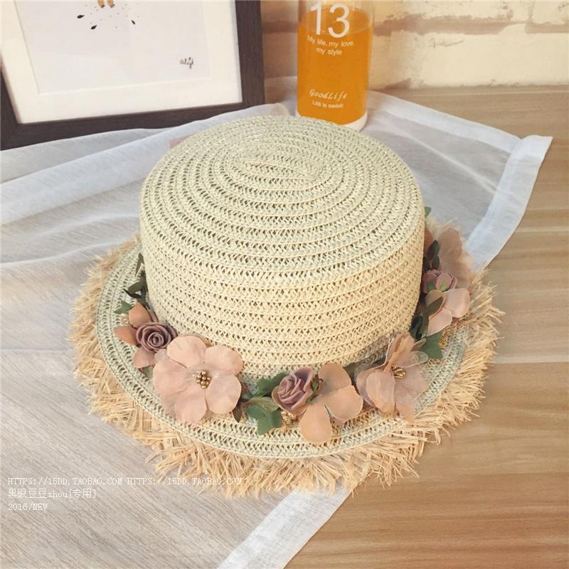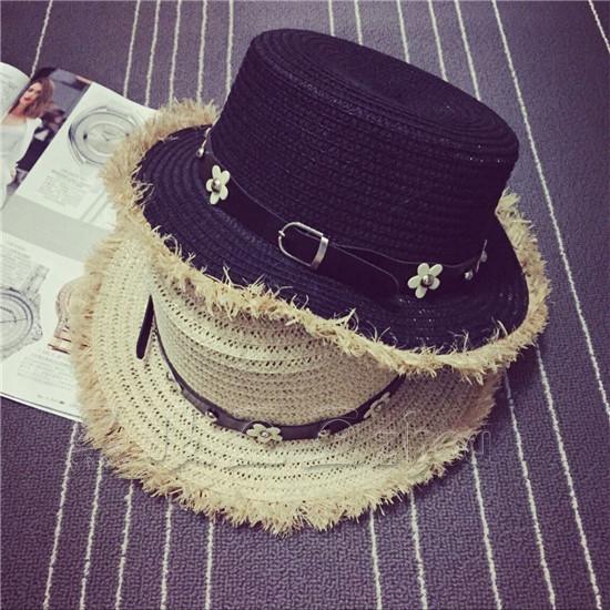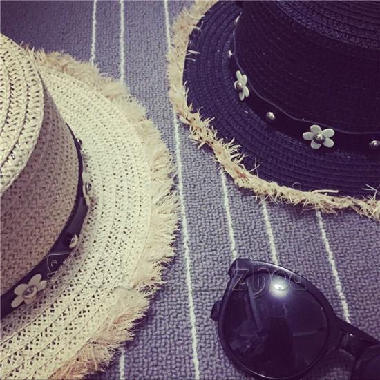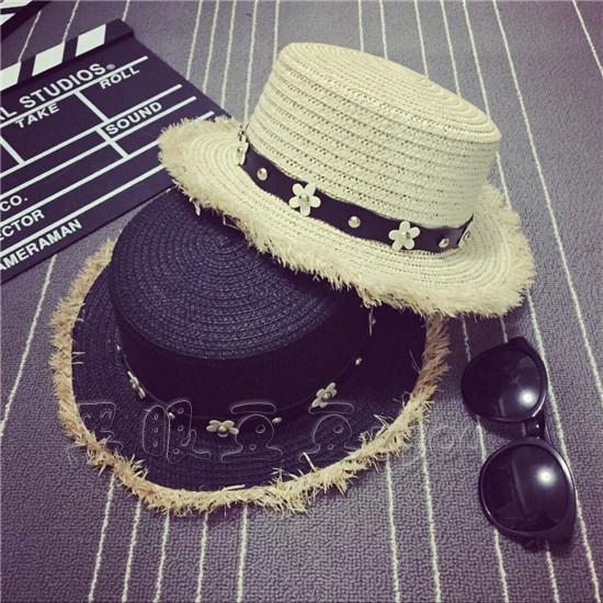雛菊花鑲鉆時尚夏季平頂禮帽韓版潮女春夏天英倫草帽沙灘帽遮陽女1入
