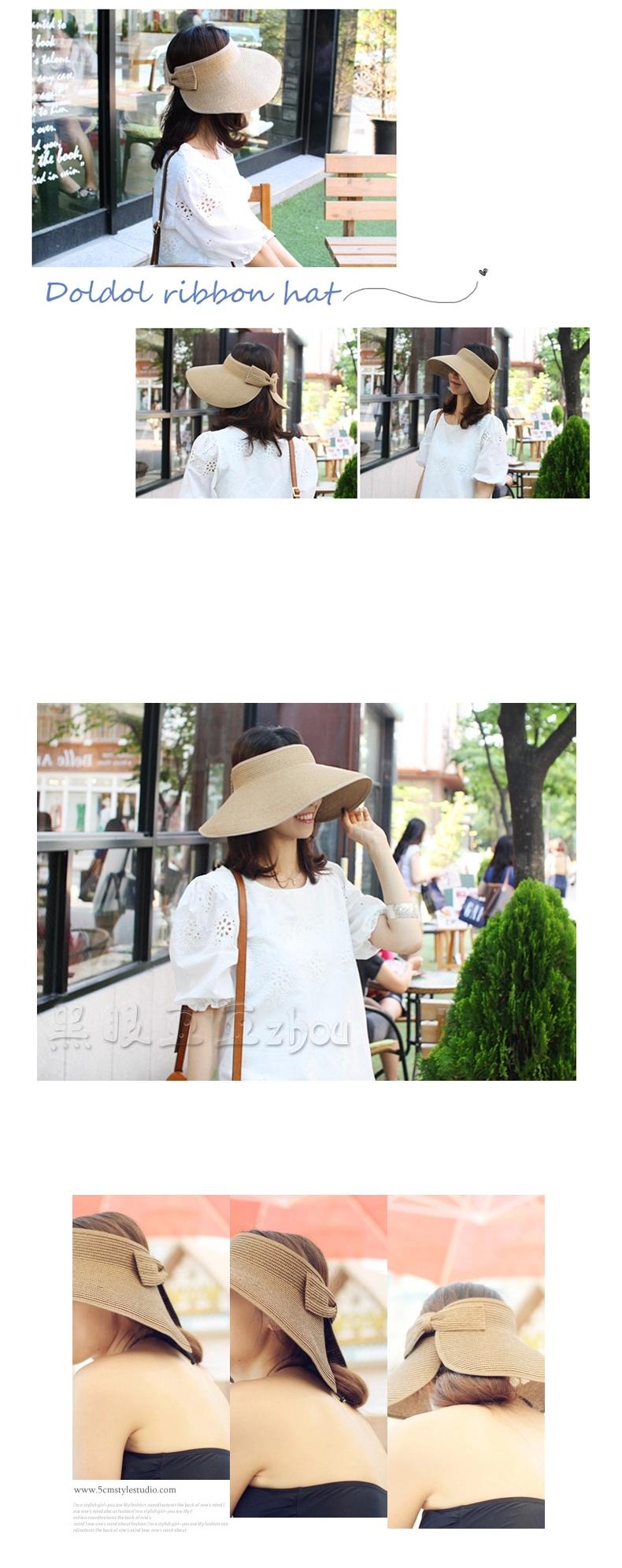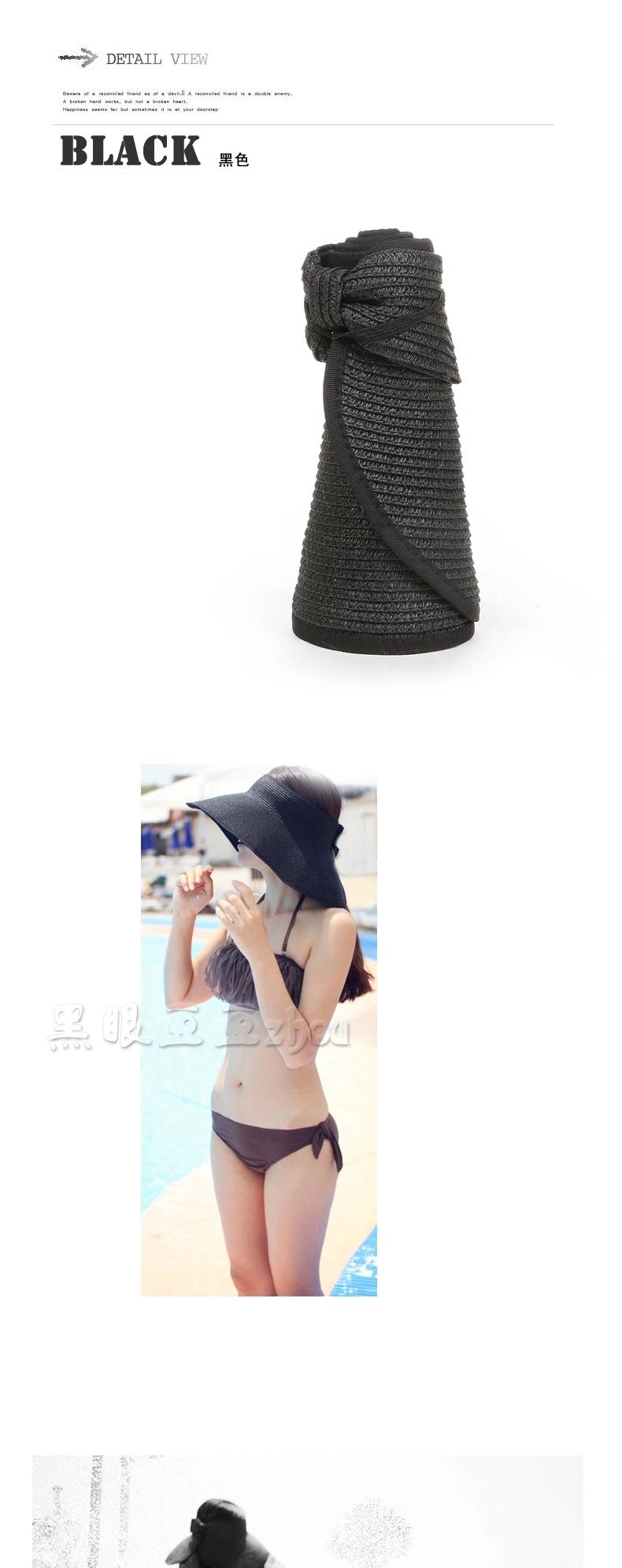 韓版夏天空頂帽女潮防曬可折疊沙灘帽子百搭大檐太陽帽防曬草帽夏1入