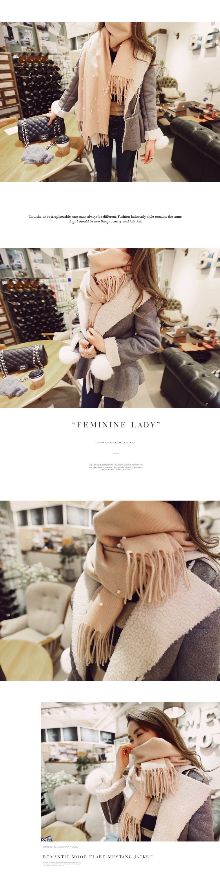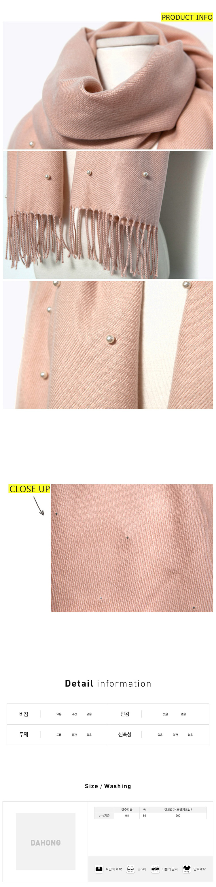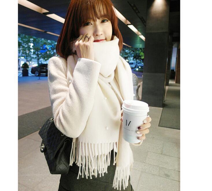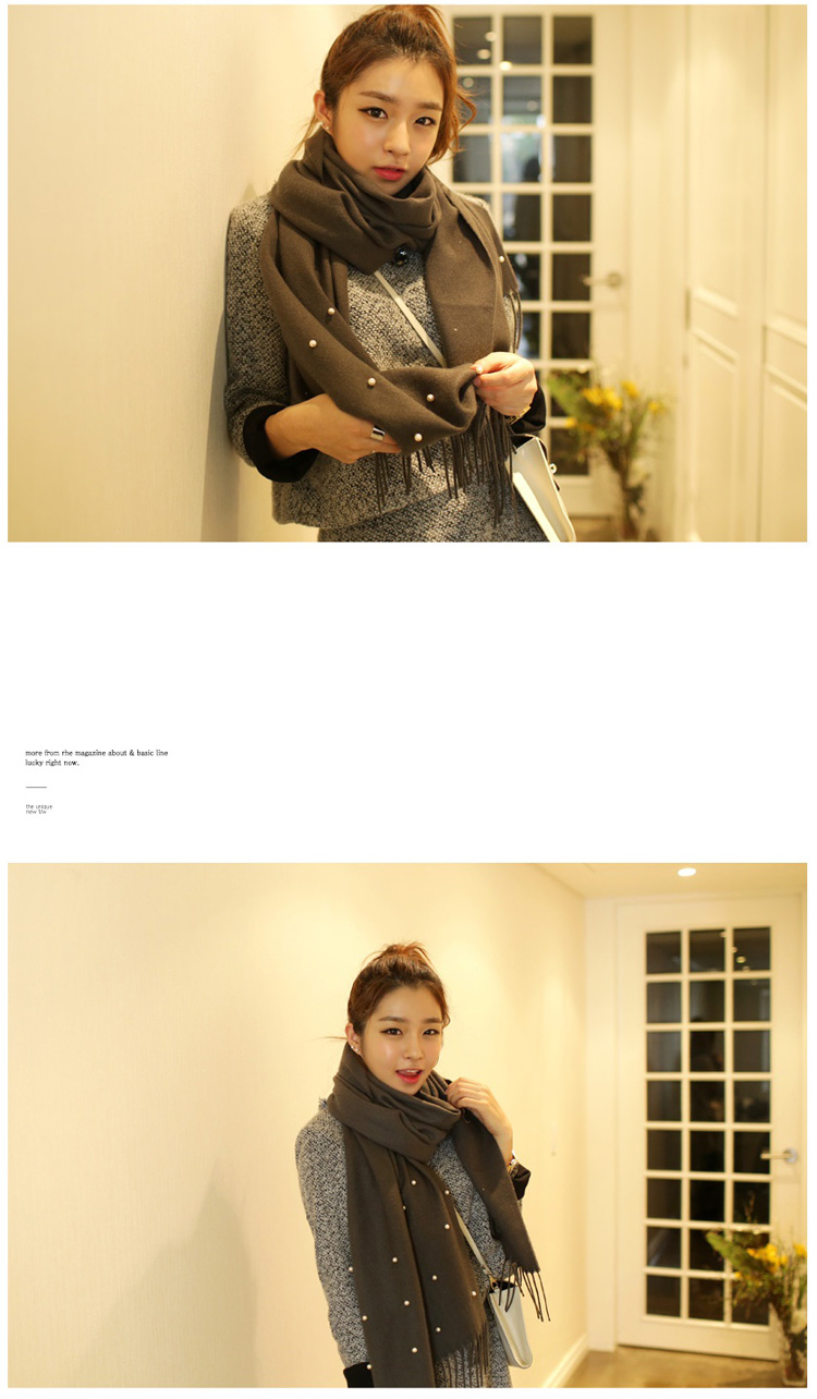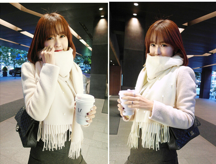 韓國純色流蘇珍珠釘珠仿羊絨圍巾披肩女秋冬季加厚保暖學生圍脖潮1入
