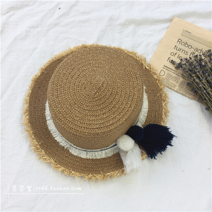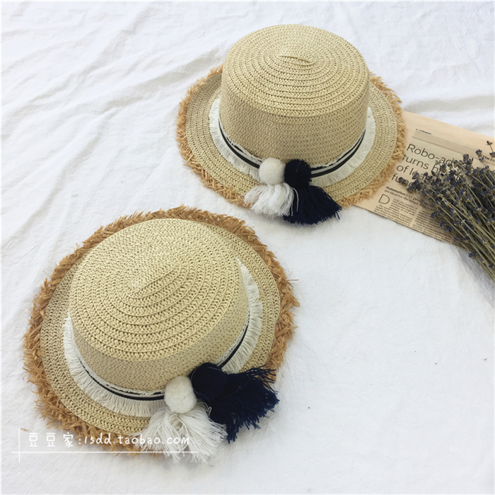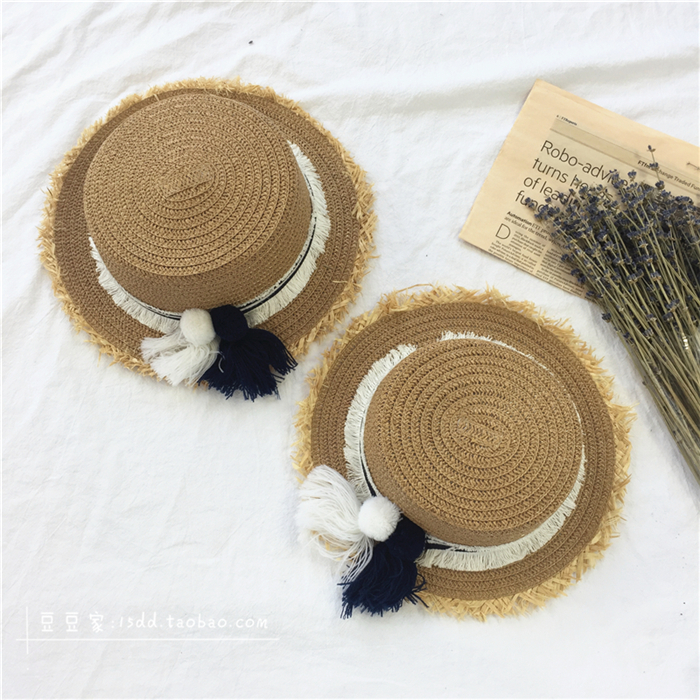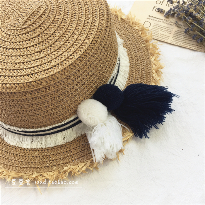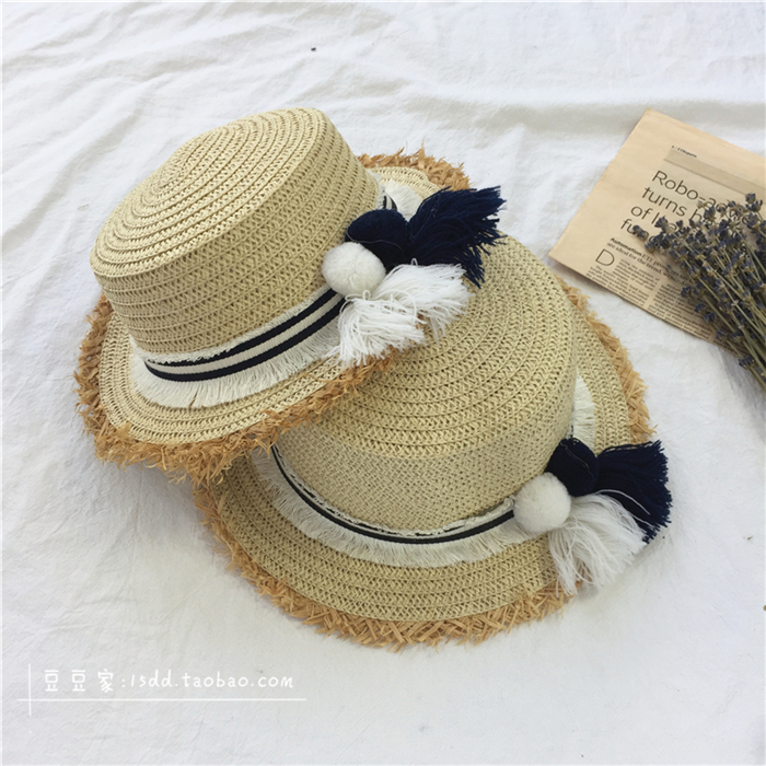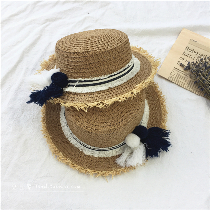 韓版毛球流蘇草帽夏季親子遮陽帽出游度假防曬小禮帽潮女休閑帽子1入