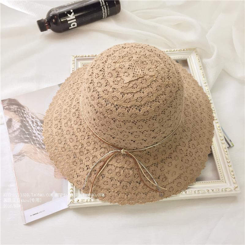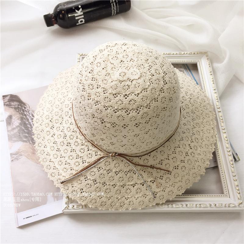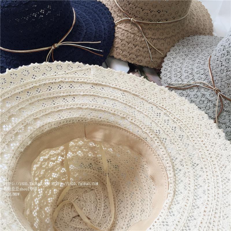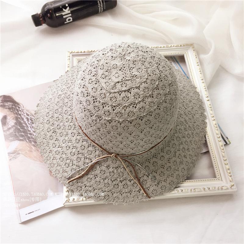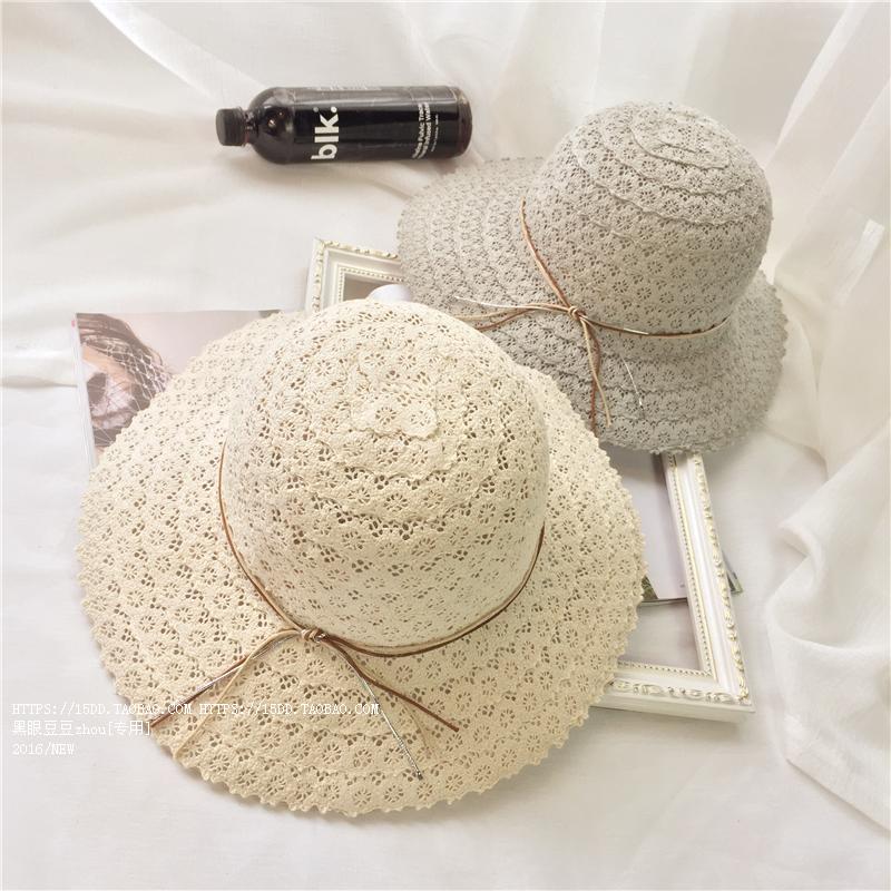 韓版夏季盆帽漁夫帽柔軟可折疊女鏤空蕾絲森系編織草帽圓頂遮陽帽1入