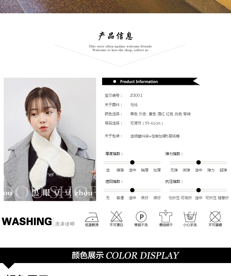 韓國親子毛線針織交叉小圍巾女圍脖潮韓版秋冬天保暖領巾百搭純色1入